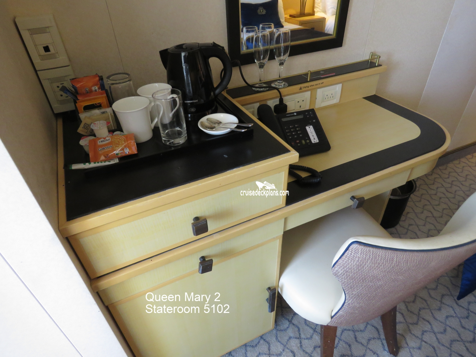 These are some actual stateroom pictures of cabin 5102 on the Queen Mary 2. Click on images below for larger image and slide show. The slide show will show the date the picture was uploaded to out website. This date is useful because Queen Mary 2 typically will update its cabins every three to five years with new carpeting and decor. We will keep older pictures for you to compare the more recent photos to. The pictures are sorted by the newest ones first. Most of our cabin pictures are contributed by actual cruisers. We pay 50 cents for any that we use. You can upload your cabin photos HERE. Afer you are done looking at these photos and/or the videos below you can click here to select another cabin.