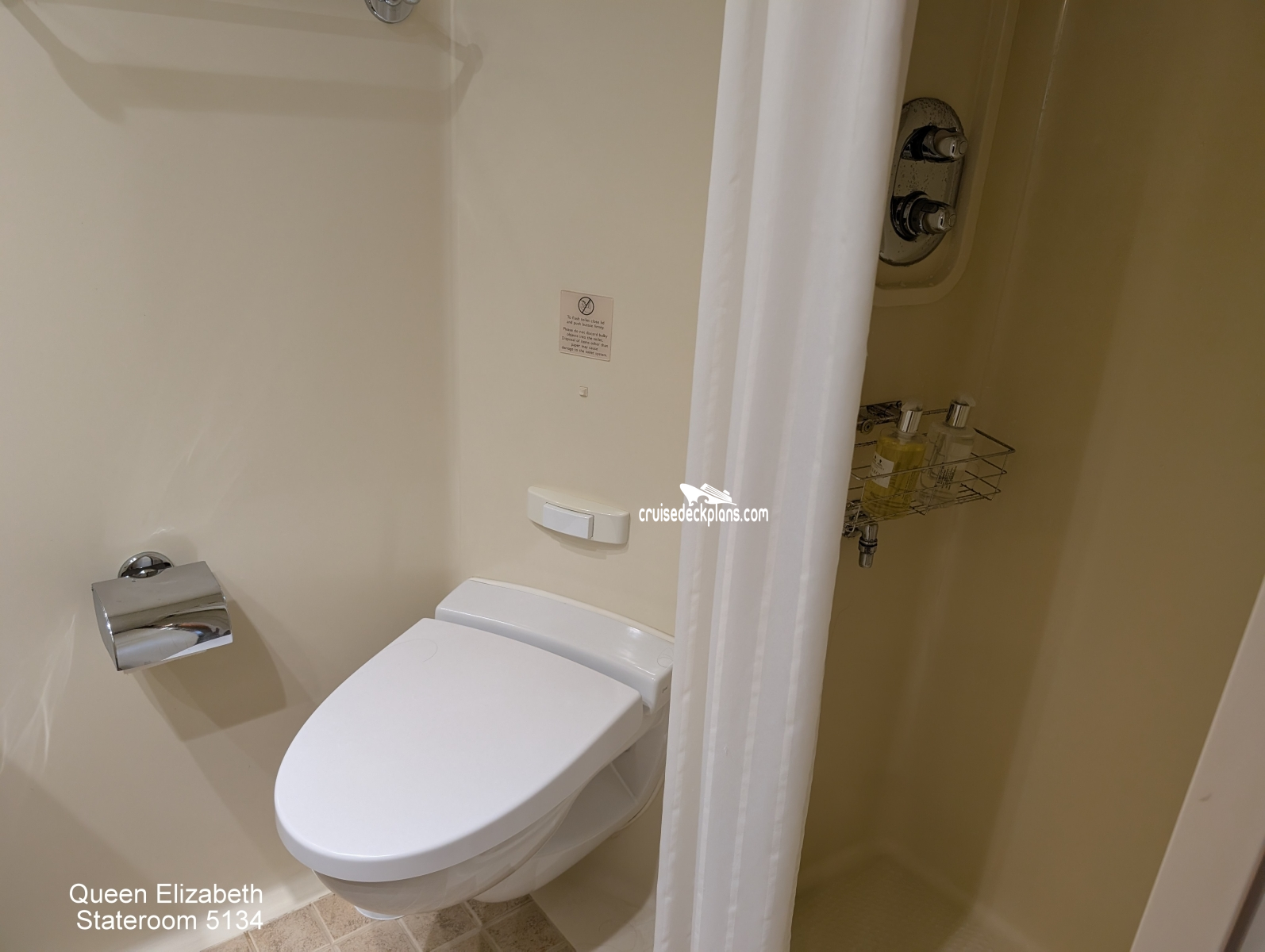 These are some actual stateroom pictures of cabin 5134 on the Queen Elizabeth. Click on images below for larger image and slide show. The slide show will show the date the picture was uploaded to out website. This date is useful because Queen Elizabeth typically will update its cabins every three to five years with new carpeting and decor. We will keep older pictures for you to compare the more recent photos to. The pictures are sorted by the newest ones first. Most of our cabin pictures are contributed by actual cruisers. We pay 50 cents for any that we use. You can upload your cabin photos HERE. Afer you are done looking at these photos and/or the videos below you can click here to select another cabin.
