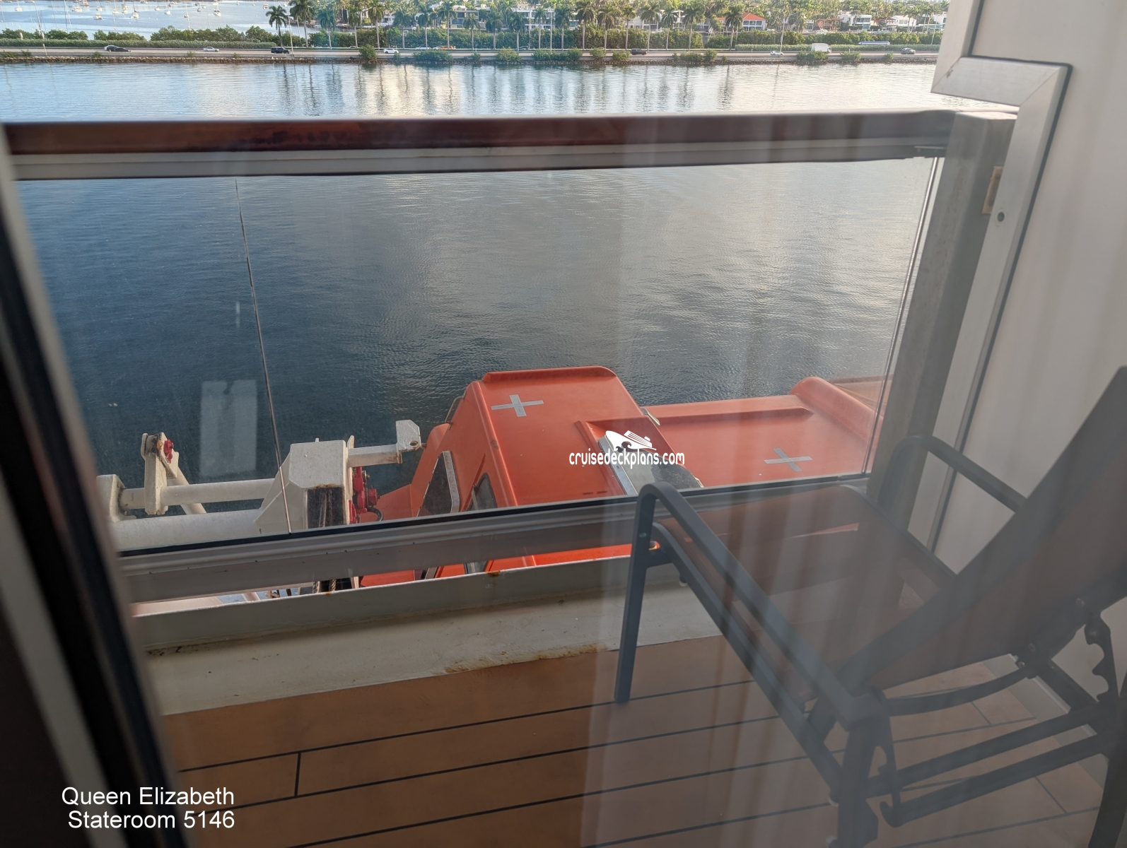 Queen Elizabeth Balcony cabin number 5146 ACTUAL videos and/or pictures, floor plans, diagrams and detailed features including a deck image of the actual location on the Queen Elizabeth ship for cabin 5146. Cruisedeckplans.com has 74,803 different (staterooms) cabins that have actual cabin pictures and/or cabin videos taken by real cruisers. That is plenty of coverage to provide you with a good sampling of all the different cabins on cruise ships. Take a minute and notice the breadcrumb menu above. This is a quick easy way to navigate our website. You can also use the menu above for menu items specific to the Queen Elizabeth cruise ship.