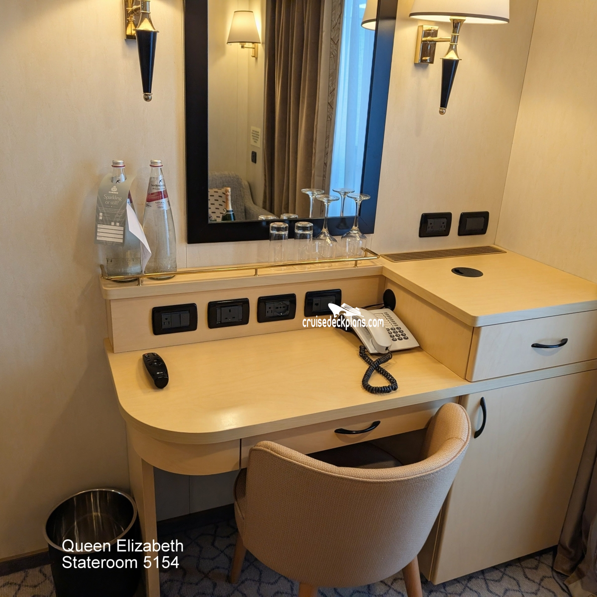 These are some actual stateroom pictures of cabin 5154 on the Queen Elizabeth. Click on images below for larger image and slide show. The slide show will show the date the picture was uploaded to out website. This date is useful because Queen Elizabeth typically will update its cabins every three to five years with new carpeting and decor. We will keep older pictures for you to compare the more recent photos to. The pictures are sorted by the newest ones first. Most of our cabin pictures are contributed by actual cruisers. We pay 50 cents for any that we use. You can upload your cabin photos HERE. Afer you are done looking at these photos and/or the videos below you can click here to select another cabin.