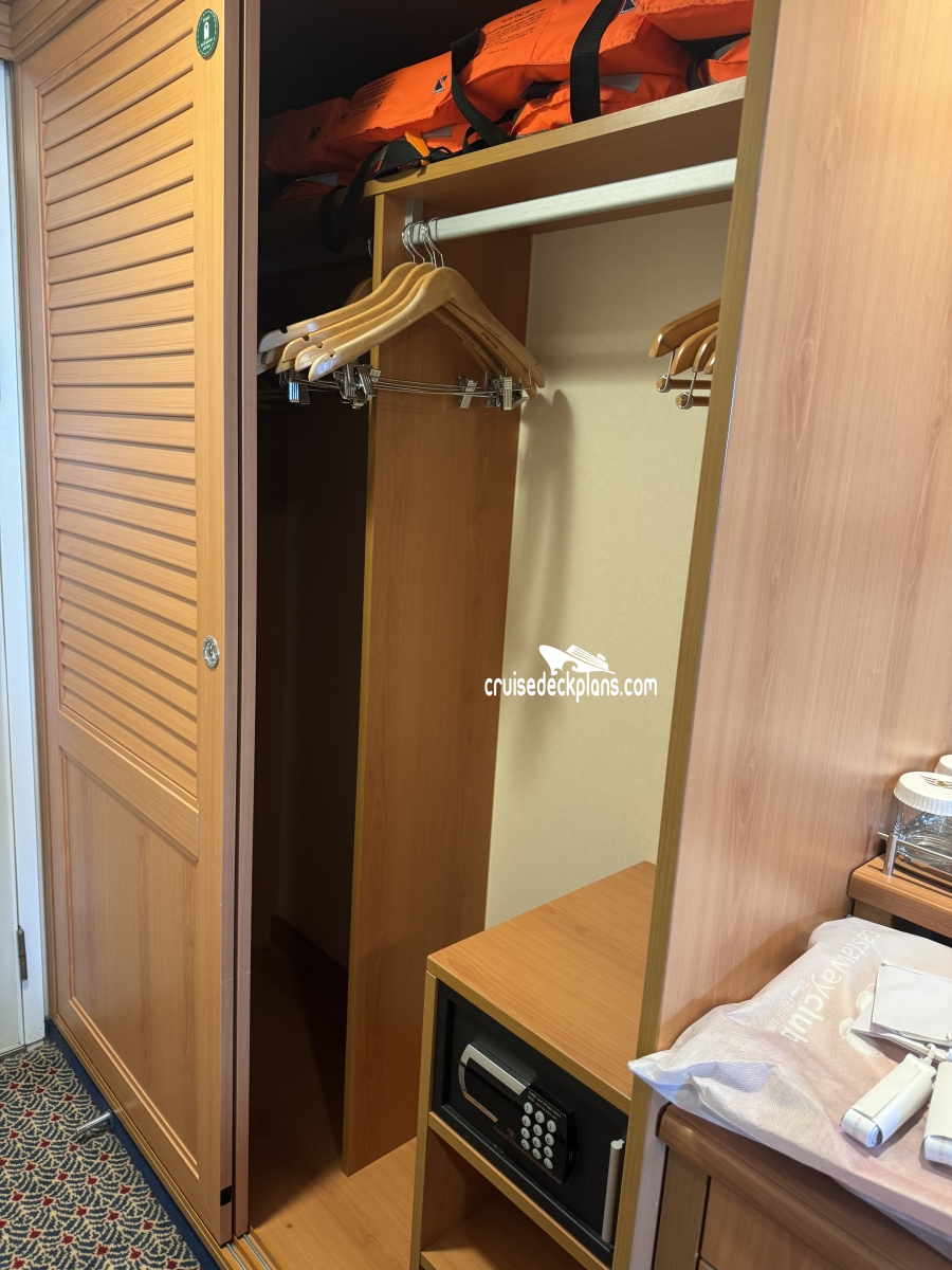 All staterooms have tub & shower, remote-control color TV, closet safe, in-room safe, hair dryer, phone with voice-mail messaging, and individual climate control.