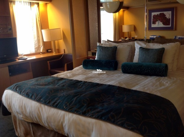 Complimentary Shoe Shine / Thick Cotton Robes / Pillow Menu / Signature Mariner's Dream bed with plush euro-top mattress and finely woven cotton linens / Lighted magnifying mirrors / Massage showerheads / Salon-quality hair dryer / Elemis Aromapure bath products / Flat-panel TV and DVD player / complimentary DVD library / Personalized cruise stationary / Umbrella / Bose docking station / Complimentary mimosas with in-suite breakfast / In-suite coffee maker and espresso machine. /