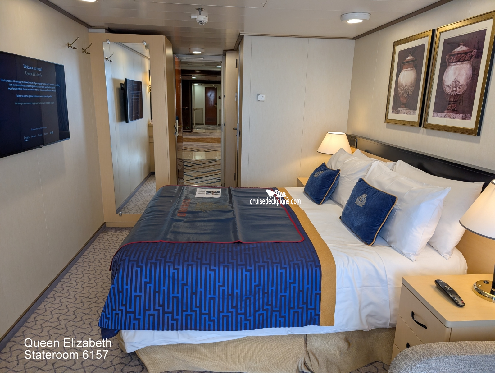 Scroll over cabin (stateroom) tiles below to click and watch actual stateroom videos of Queen Elizabeth cabin 6157. You can choose to watch the videos right on this page, or click to watch them on YouTube (will open in new window). When you are done viewing these videos and/or the cabin pictures above, you can click here to select another cabin. The date shown below is the date video was published. Use this to see decor changes. Keep in mind that stateroom cabins are typically updated once every three to five years. To save you time, Cruisedeckplans.com will spend hours every week finding more actual stateroom videos on YouTube.
