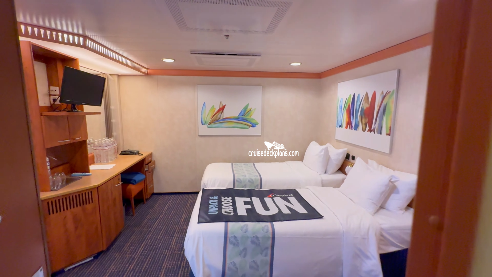 These are some actual stateroom pictures of cabin 6234 on the Carnival Legend. Click on images below for larger image and slide show. The slide show will show the date the picture was uploaded to out website. This date is useful because Carnival Legend typically will update its cabins every three to five years with new carpeting and decor. We will keep older pictures for you to compare the more recent photos to. The pictures are sorted by the newest ones first. Most of our cabin pictures are contributed by actual cruisers. We pay 50 cents for any that we use. You can upload your cabin photos HERE. Afer you are done looking at these photos and/or the videos below you can click here to select another cabin.