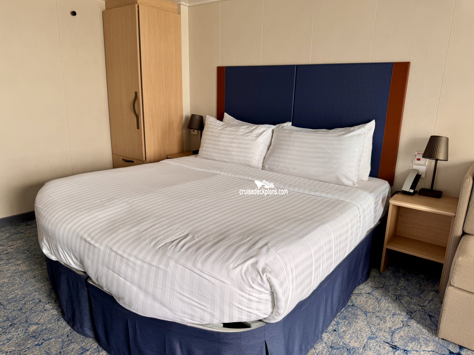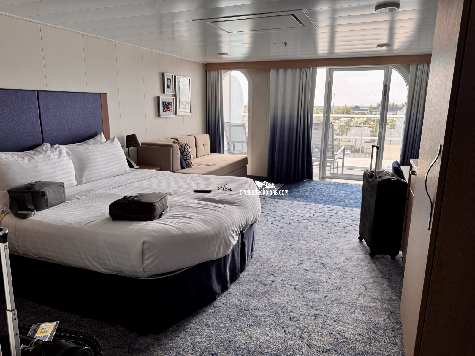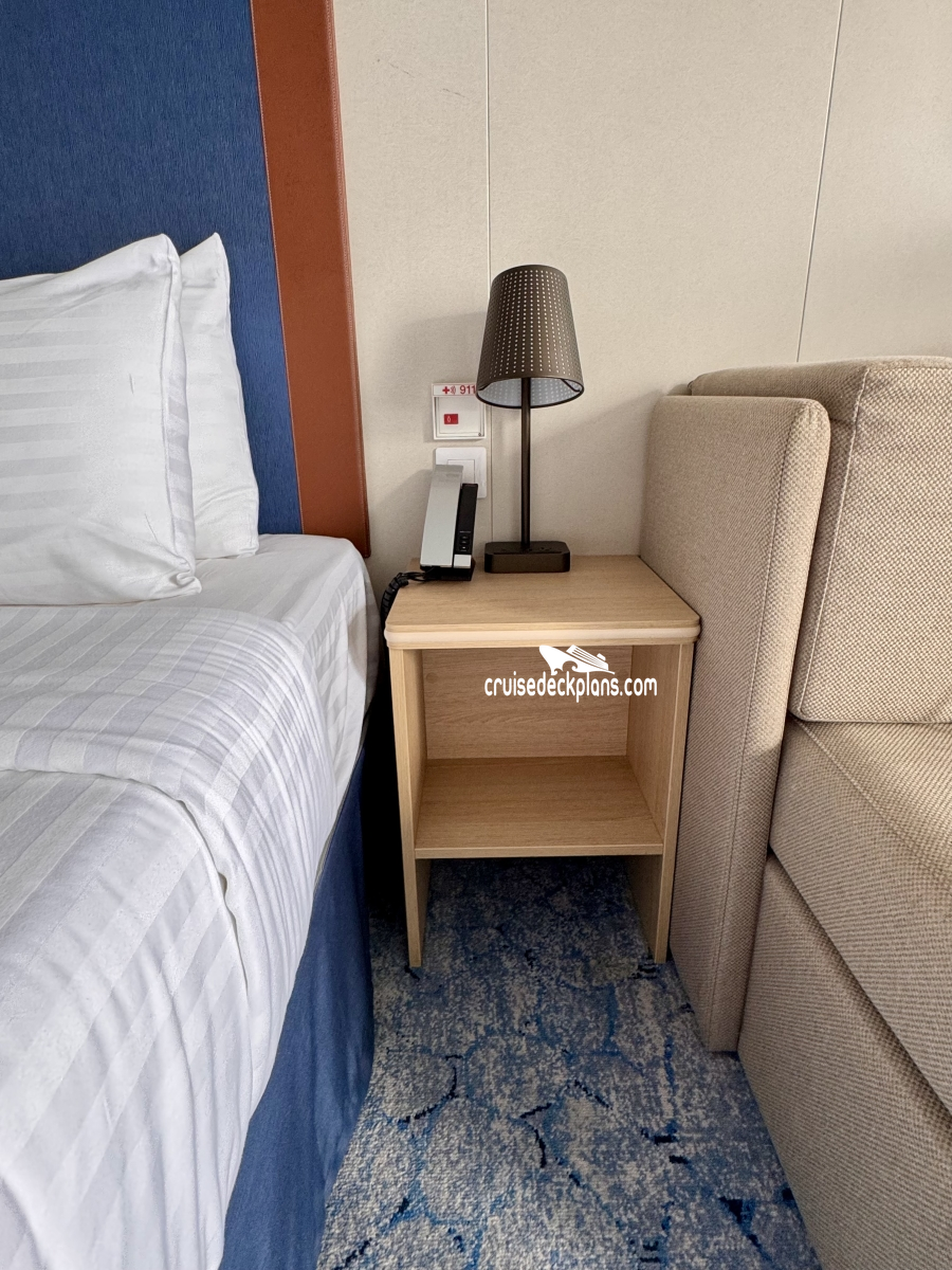 Some balconies up to 80 square feet. Category 1C (was D1) and 2C (was D2) has larger balconies. Some cabins are laid out with the bed near the balcony, others have the sofa near the balcony. Triple and Quad cabins have the sofa near the balcony. Layout changes every other cabin. Handicap cabins may have small chair bed instead of sofa bed. If there is more than two booked in cabin the chair bed is not recommended for adults.