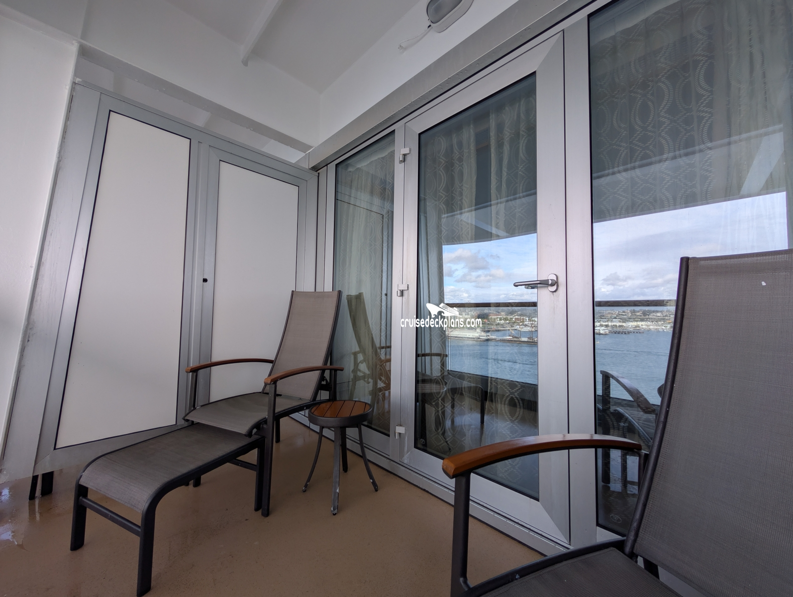 - Floor to ceiling windows that open to private balcony
