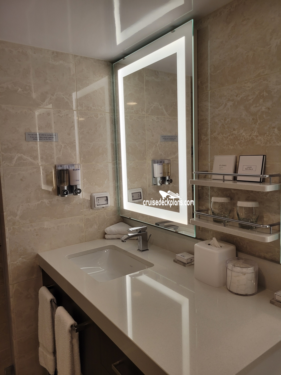 Concierge Service / Priority Check In / Priority Debarkation / Priority Tender Boarding / Afternoon Canapes / Afternoon Tea / Complimentary Shoe Shine / Welcome Champagne / Exclusive Lounge / Exclusive Full Breakfast Restaurant / Priority Dining Reservations / Complimentary Laundry / Thick Cotton Robes / Pillow Menu / Signature Mariner's Dream bed with plush euro-top mattress and finely woven cotton linens / Lighted magnifying mirrors / Massage showerheads / Salon-quality hair dryer / Elemis Aromapure bath products / Flat-panel TV and DVD player / complimentary DVD library / Personalized cruise stationary / Umbrella & binocular usage / Gorgeous corsages and boutonnieres for the first formal night / Cocktail party with ship's officers / Premium duvet / Complimentary bottled water at embarkation / Bose docking station / Complimentary mimosas with in-suite breakfast / In-suite coffee maker and espresso machine. /