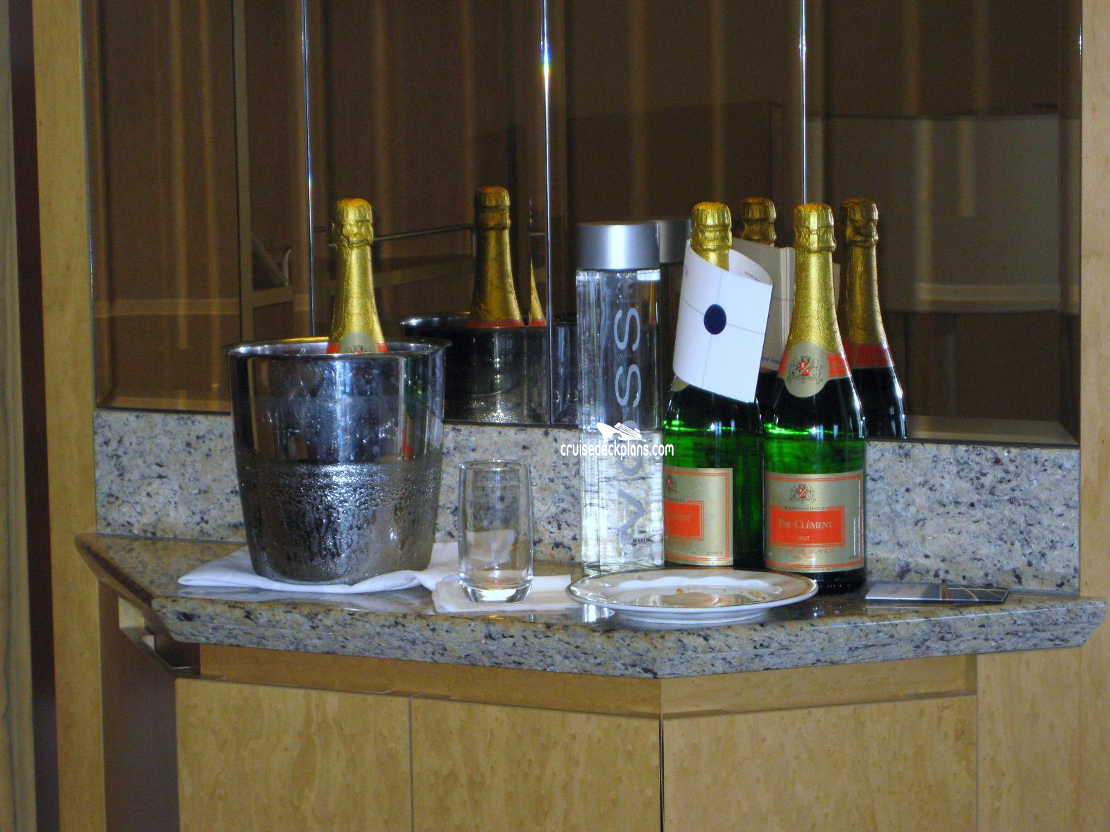 Concierge Service / Priority Check In / Priority Debarkation / Priority Tender Boarding / Afternoon Canapes / Afternoon Tea / Complimentary Shoe Shine / Welcome Champagne / Exclusive Lounge / Exclusive Full Breakfast Restaurant / Priority Dining Reservations / Complimentary Laundry / Thick Cotton Robes / Pillow Menu / Signature Mariner's Dream bed with plush euro-top mattress and finely woven cotton linens / Lighted magnifying mirrors / Massage showerheads / Salon-quality hair dryer / Elemis Aromapure bath products / Flat-panel TV and DVD player / complimentary DVD library / Personalized cruise stationary / Umbrella & binocular usage / Gorgeous corsages and boutonnieres for the first formal night / Cocktail party with ship's officers / Premium duvet / Complimentary bottled water at embarkation / Bose docking station / Complimentary mimosas with in-suite breakfast / In-suite coffee maker and espresso machine. /