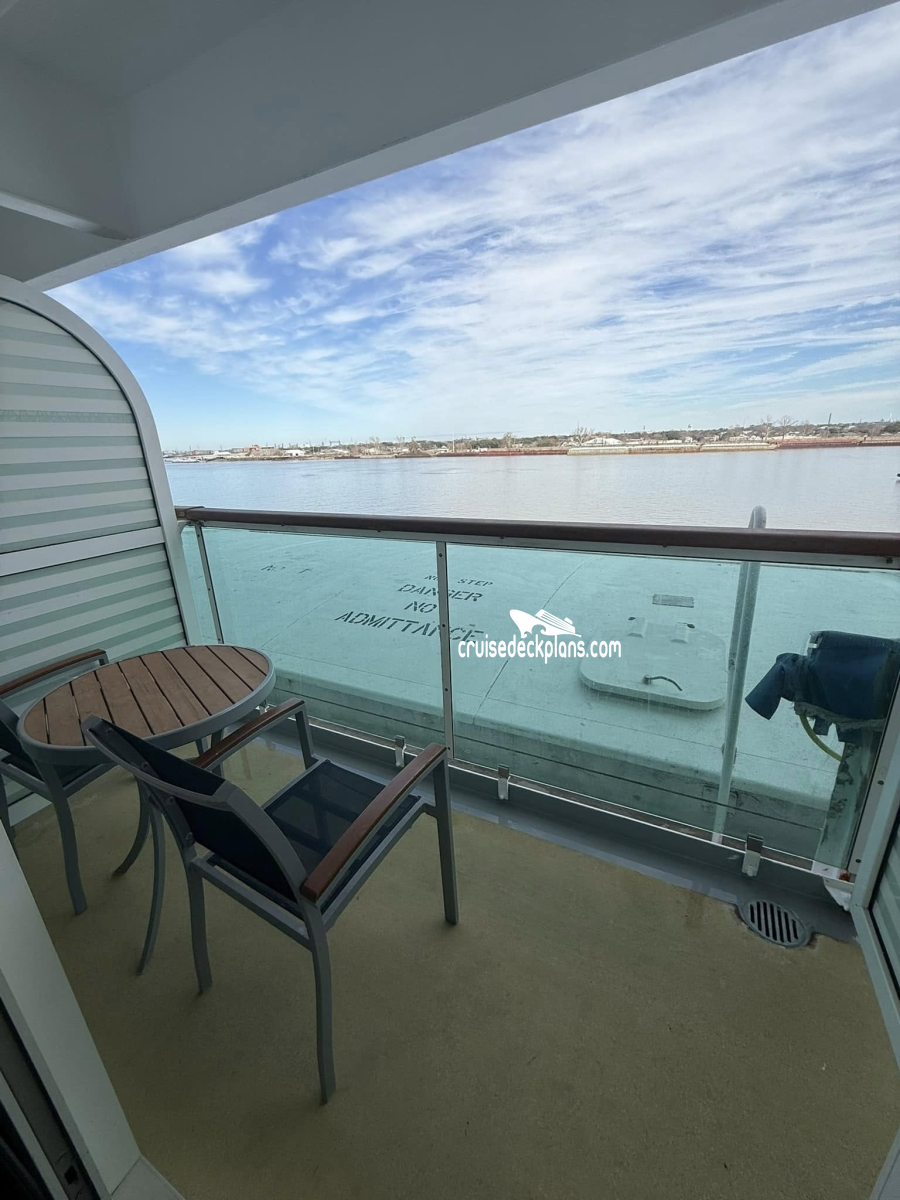Staterooms 7064, 7066, 7142, 7564, 7506, 8058, 8060, 8558, 8560, 8162, 8164, 8662 & 8664 have partially obstructed views. Some balcony sizes are as small as 27 square feet.