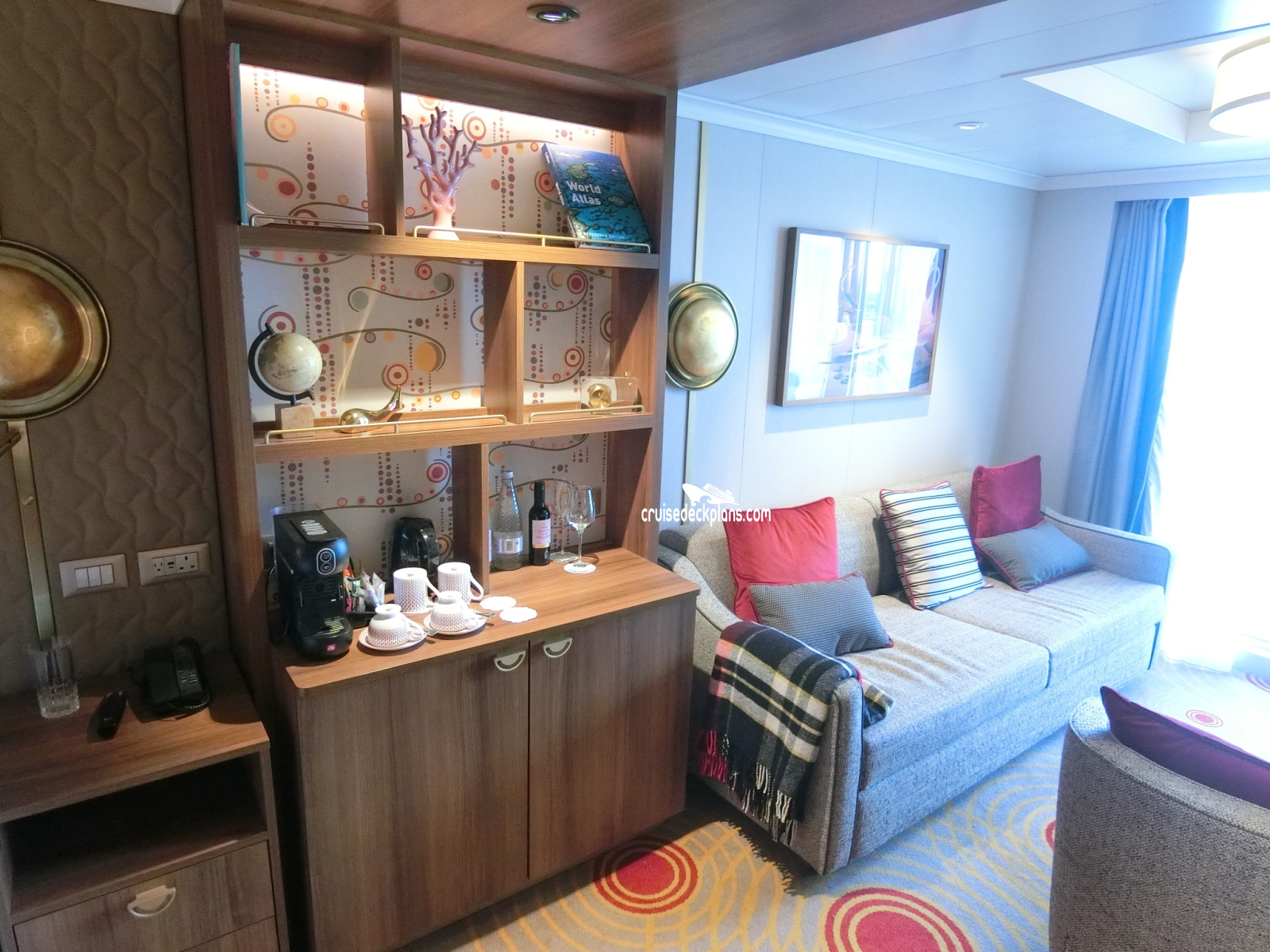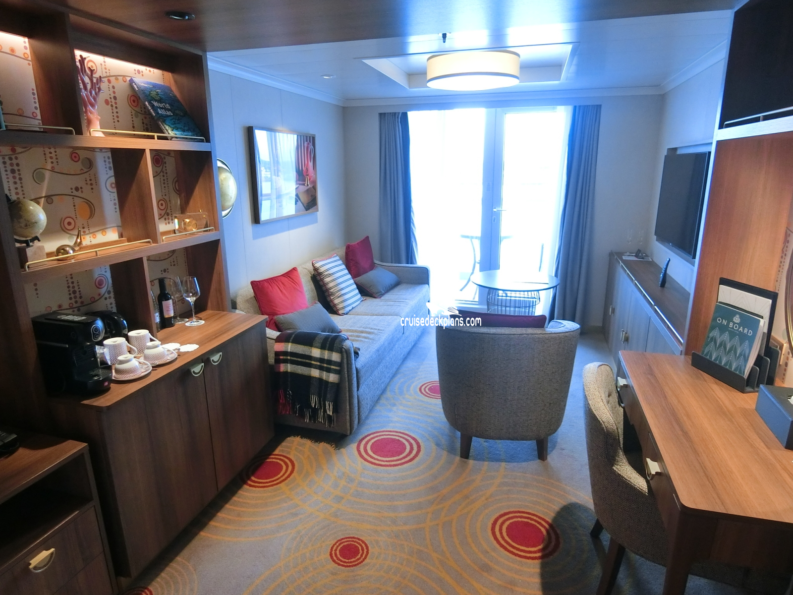 Queen Anne Princess Suite cabin number 7169 ACTUAL videos and/or pictures, floor plans, diagrams and detailed features including a deck image of the actual location on the Queen Anne ship for cabin 7169. Cruisedeckplans.com has 75,599 different (staterooms) cabins that have actual cabin pictures and/or cabin videos taken by real cruisers. That is plenty of coverage to provide you with a good sampling of all the different cabins on cruise ships. Take a minute and notice the breadcrumb menu above. This is a quick easy way to navigate our website. You can also use the menu above for menu items specific to the Queen Anne cruise ship.