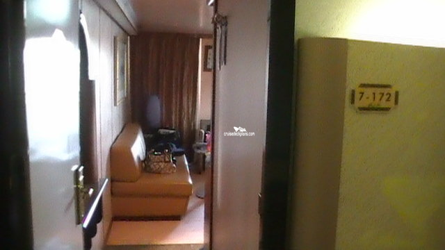 These are some actual stateroom pictures of cabin 7172 on the Carnival Sunshine. Click on images below for larger image and slide show. The slide show will show the date the picture was uploaded to out website. This date is useful because Carnival Sunshine typically will update its cabins every three to five years with new carpeting and decor. We will keep older pictures for you to compare the more recent photos to. The pictures are sorted by the newest ones first. Most of our cabin pictures are contributed by actual cruisers. We pay 50 cents for any that we use. You can upload your cabin photos HERE. Afer you are done looking at these photos and/or the videos below you can click here to select another cabin.