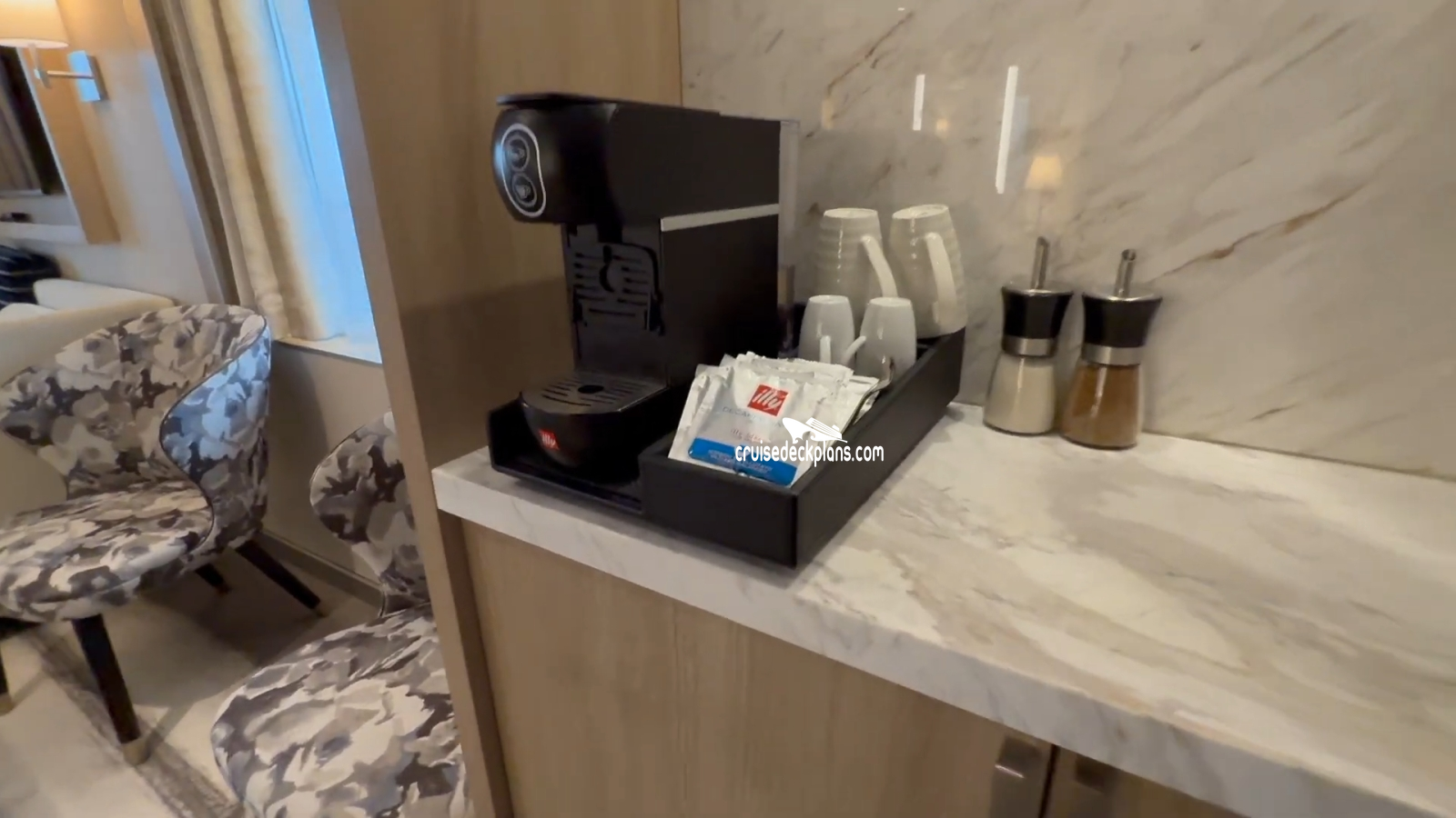 Concierge Service / Priority Check In / Priority Debarkation / Priority Tender Boarding / Afternoon Canapes / Afternoon Tea / Complimentary Shoe Shine / Welcome Champagne / Exclusive Lounge / Exclusive Full Breakfast Restaurant / Priority Dining Reservations / Complimentary Laundry / Thick Cotton Robes / Pillow Menu / Signature Mariner's Dream bed with plush euro-top mattress and finely woven cotton linens / Lighted magnifying mirrors / Massage showerheads / Salon-quality hair dryer / Elemis Aromapure bath products / Flat-panel TV and DVD player / complimentary DVD library / Personalized cruise stationary / Umbrella & binocular usage / Gorgeous corsages and boutonnieres for the first formal night / Cocktail party with ship's officers / Premium duvet / Complimentary bottled water at embarkation / Bose docking station / Complimentary mimosas with in-suite breakfast / In-suite coffee maker and espresso machine. /