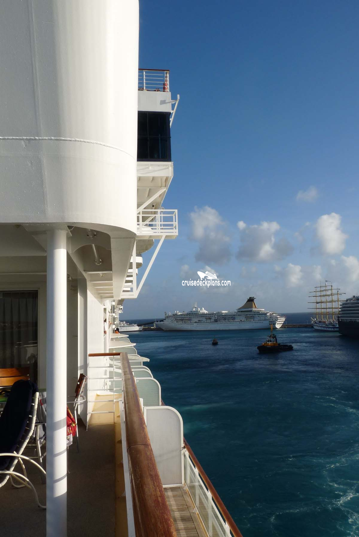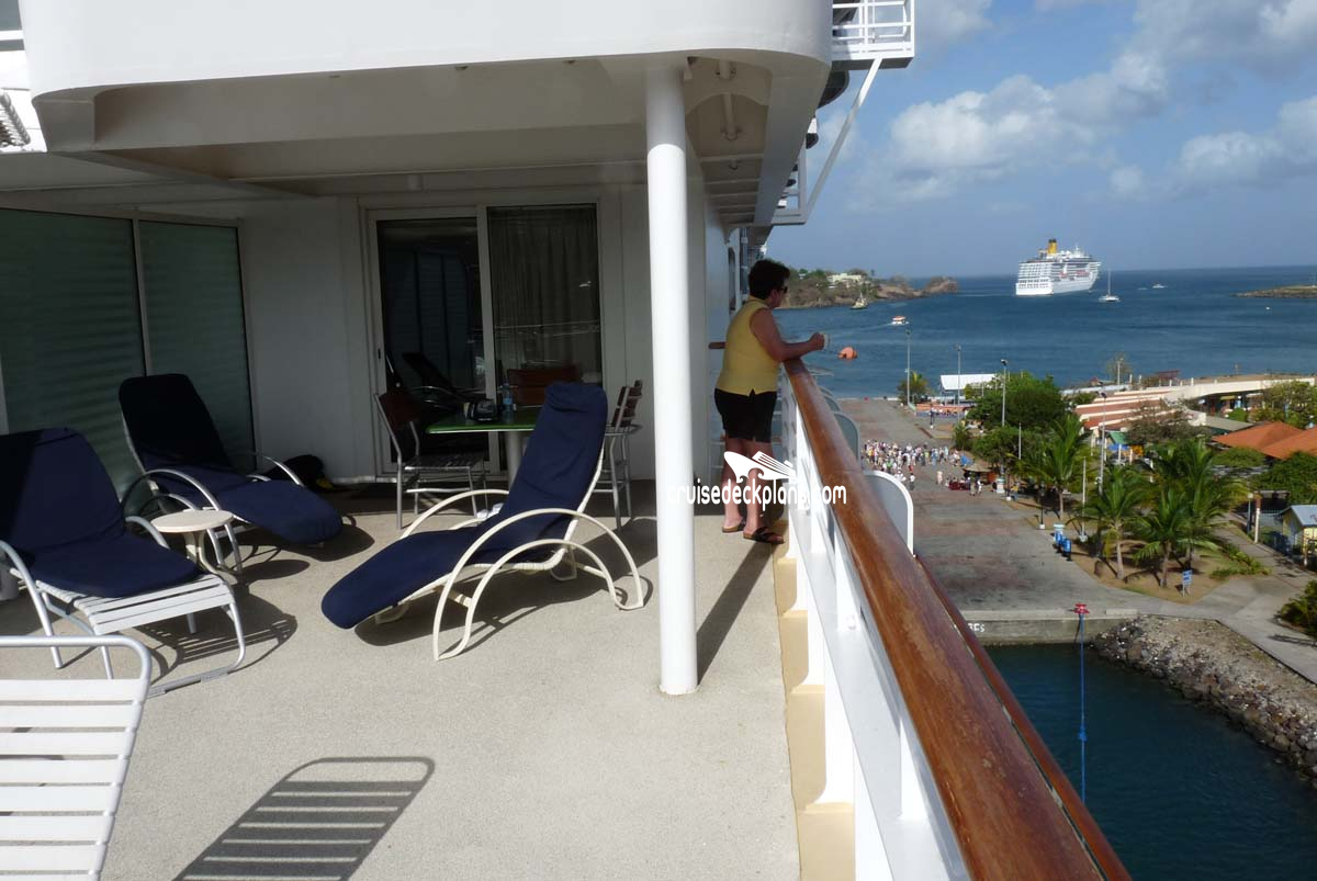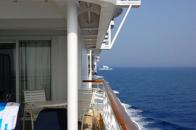 - NOTE: Corner cabins have mostly solid metal balcony walls.