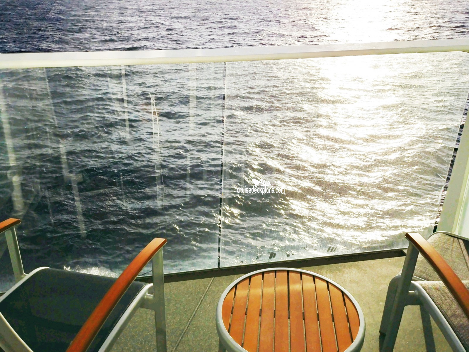 Some balconies up to 80 square feet. Category 1C (was D1) and 2C (was D2) has larger balconies. Some cabins are laid out with the bed near the balcony, others have the sofa near the balcony. Triple and Quad cabins have the sofa near the balcony. Layout changes every other cabin. Handicap cabins may have small chair bed instead of sofa bed. If there is more than two booked in cabin the chair bed is not recommended for adults.