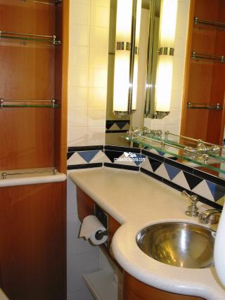 All staterooms have tub & shower, remote-control color TV, closet safe, in-room safe, hair dryer, phone with voice-mail messaging, and individual climate control.