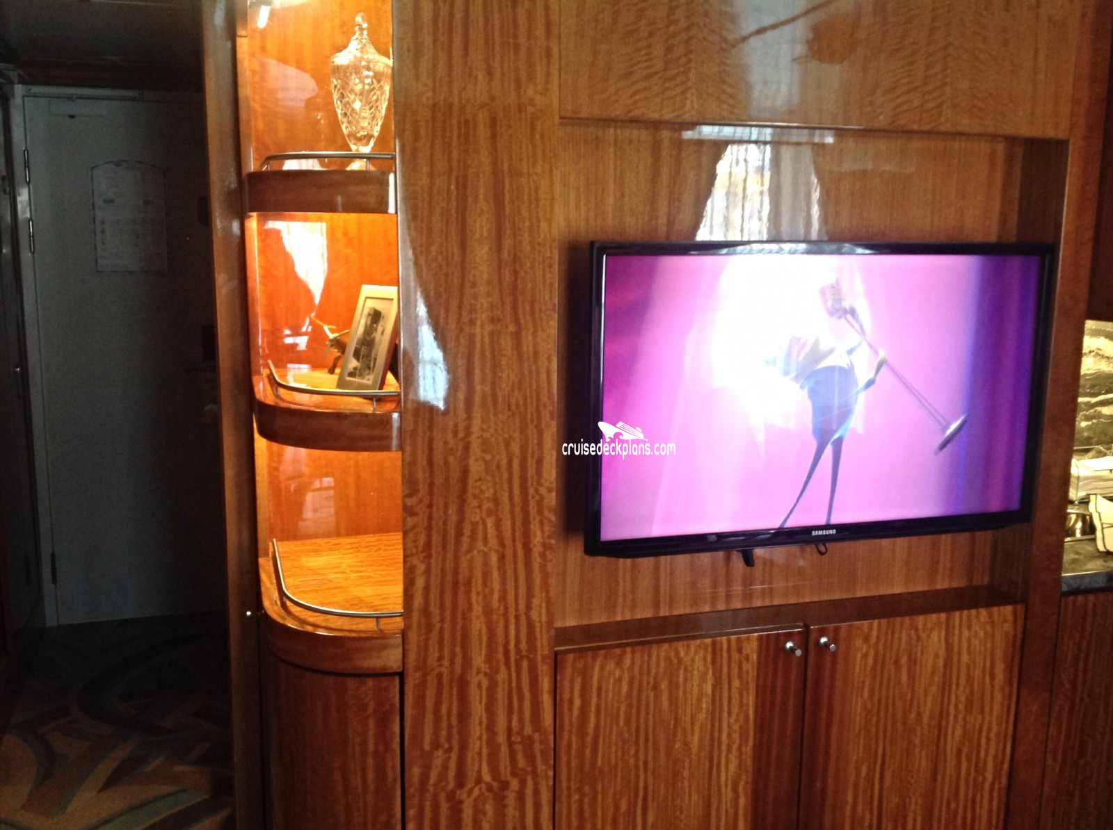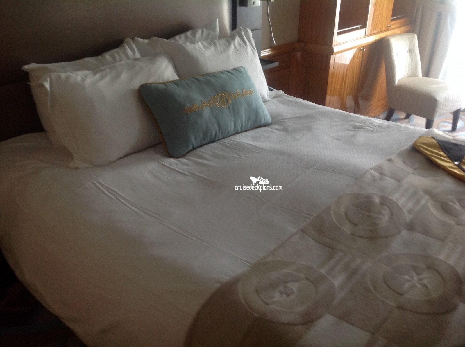 Concierge Service / Priority Check In / Priority Tender Boarding / Dining in the Stateroom / Exclusive Lounge / Priority Dining Reservations / Exclusive Outdoor Lounge / Thick Cotton Robes / Pillow Menu / Sealy Posturepedic Euro-top mattress / Frette 100% Egyptian cotton linens / 2 LCD 42 inch HD flat screen Tvs / Ipod docking station / Enhanced line of H20 Plus spa products / Media library / Pre-arrival concierge services /