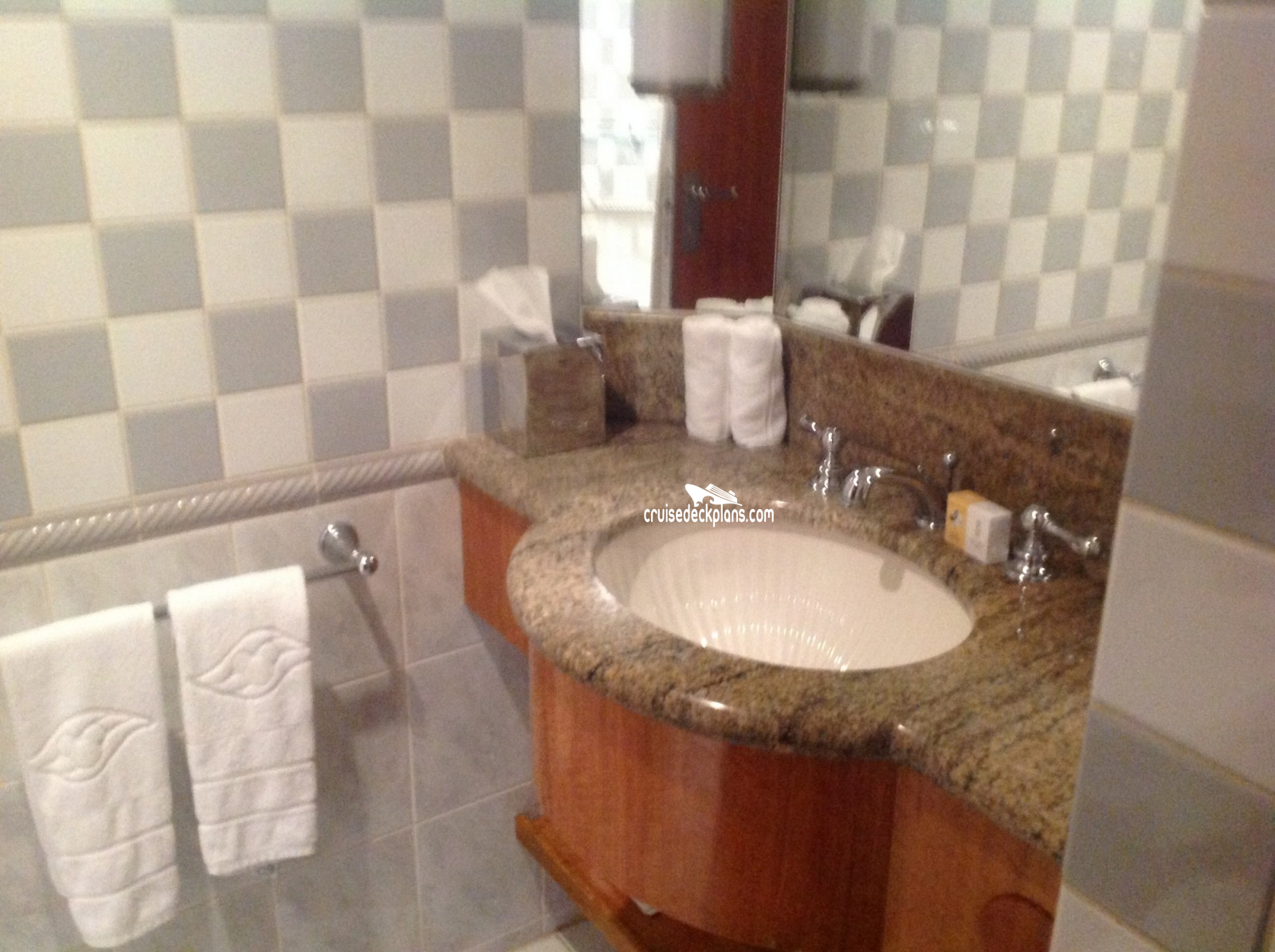 Cabin size includes balcony. All staterooms have tub & shower, remote-control color TV, closet safe, in-room safe, hair dryer, phone with voice-mail messaging, and individual climate control.