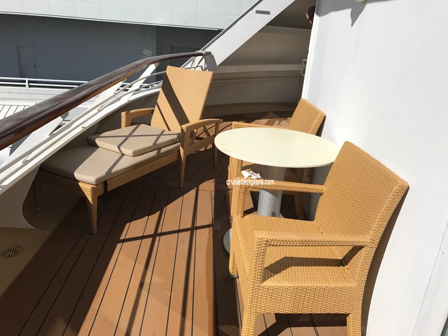 Balcony size for category AC is 149 square feet. Balcony size for category AD is 126 square feet.