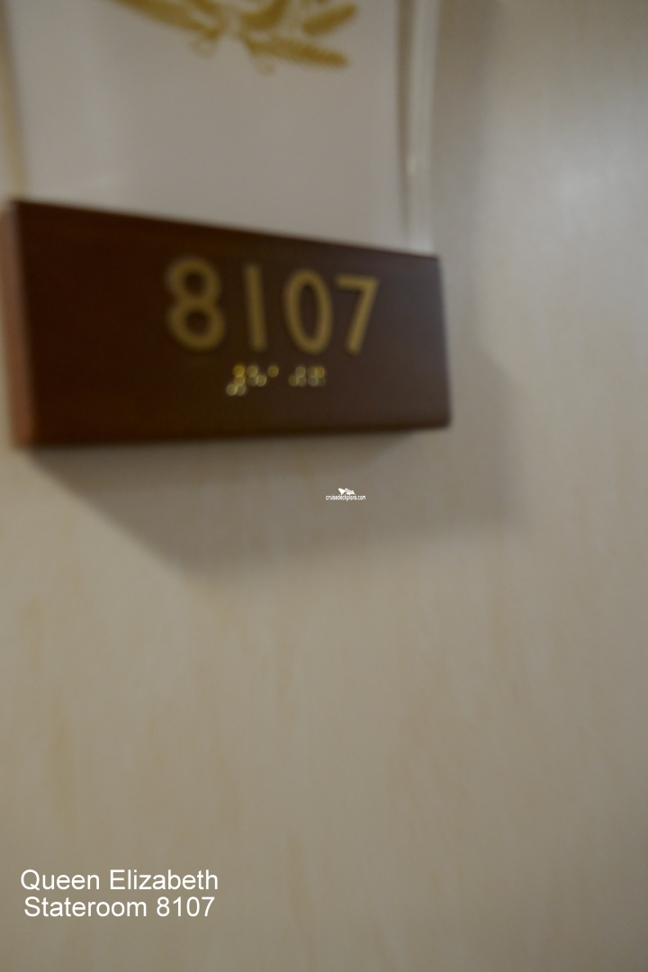 These are some actual stateroom pictures of cabin 8107 on the Queen Elizabeth. Click on images below for larger image and slide show. The slide show will show the date the picture was uploaded to out website. This date is useful because Queen Elizabeth typically will update its cabins every three to five years with new carpeting and decor. We will keep older pictures for you to compare the more recent photos to. The pictures are sorted by the newest ones first. Most of our cabin pictures are contributed by actual cruisers. We pay 50 cents for any that we use. You can upload your cabin photos HERE. Afer you are done looking at these photos and/or the videos below you can click here to select another cabin.