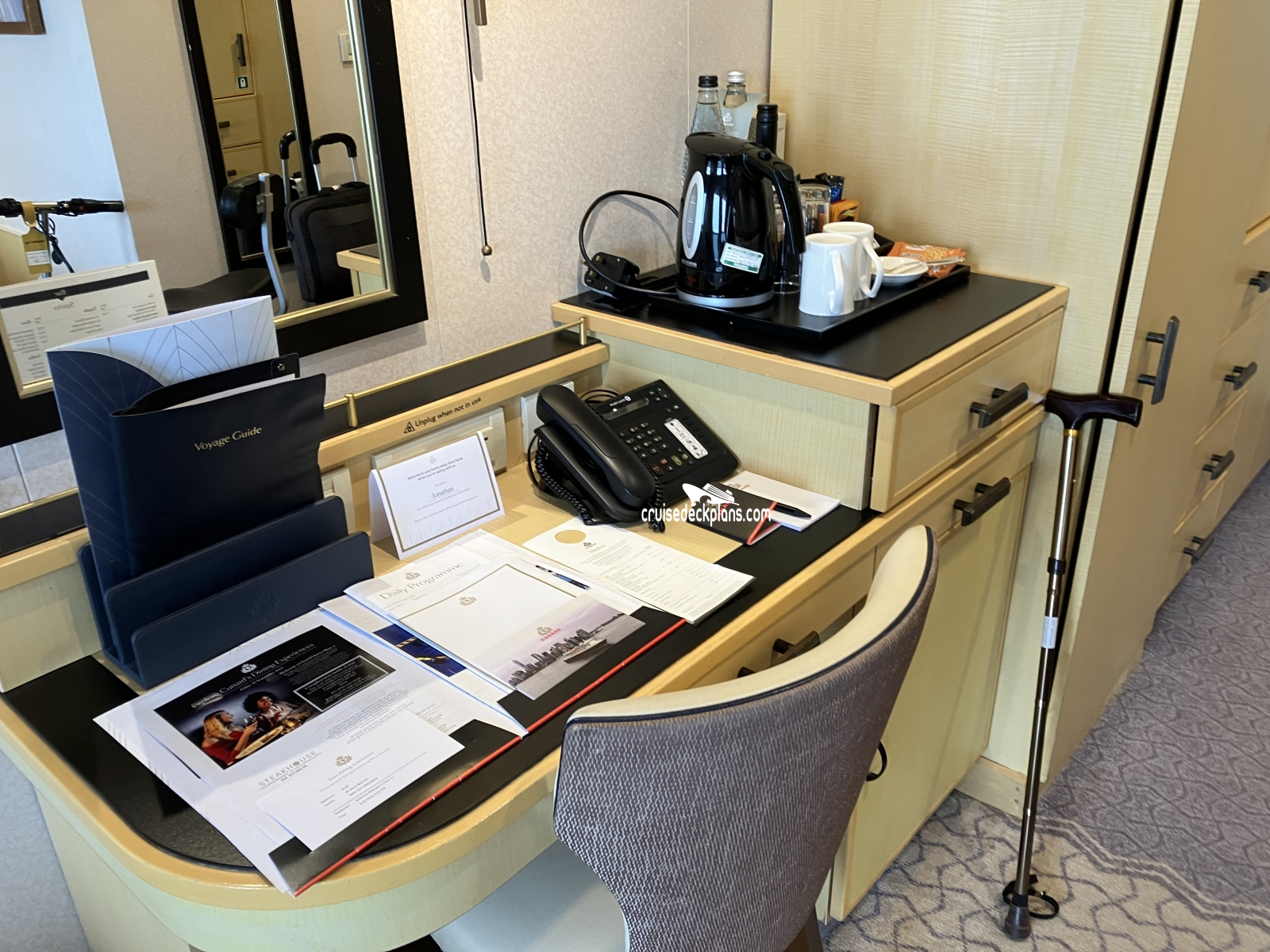 These are some actual stateroom pictures of cabin 8128 on the Queen Mary 2. Click on images below for larger image and slide show. The slide show will show the date the picture was uploaded to out website. This date is useful because Queen Mary 2 typically will update its cabins every three to five years with new carpeting and decor. We will keep older pictures for you to compare the more recent photos to. The pictures are sorted by the newest ones first. Most of our cabin pictures are contributed by actual cruisers. We pay 50 cents for any that we use. You can upload your cabin photos HERE. Afer you are done looking at these photos and/or the videos below you can click here to select another cabin.