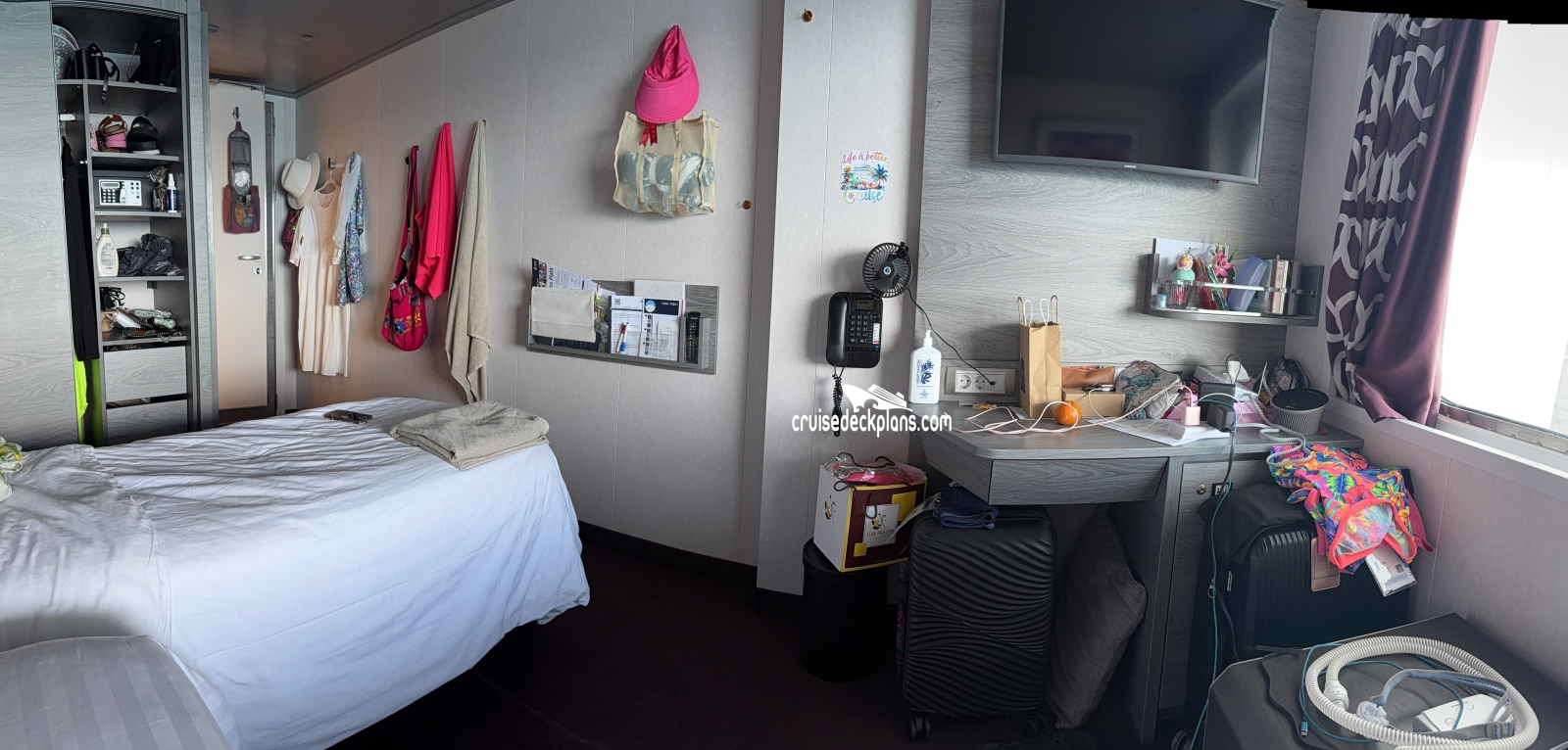 These are some actual stateroom pictures of cabin 8145 on the MSC Grandiosa. Click on images below for larger image and slide show. The slide show will show the date the picture was uploaded to out website. This date is useful because MSC Grandiosa typically will update its cabins every three to five years with new carpeting and decor. We will keep older pictures for you to compare the more recent photos to. The pictures are sorted by the newest ones first. Most of our cabin pictures are contributed by actual cruisers. We pay 50 cents for any that we use. You can upload your cabin photos HERE. Afer you are done looking at these photos and/or the videos below you can click here to select another cabin.