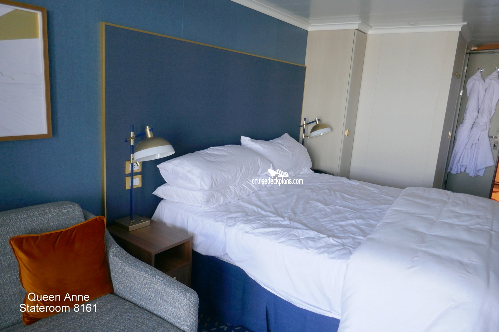 Scroll over cabin (stateroom) tiles below to click and watch actual stateroom videos of Queen Anne cabin 8161. You can choose to watch the videos right on this page, or click to watch them on YouTube (will open in new window). When you are done viewing these videos and/or the cabin pictures above, you can click here to select another cabin. The date shown below is the date video was published. Use this to see decor changes. Keep in mind that stateroom cabins are typically updated once every three to five years. To save you time, Cruisedeckplans.com will spend hours every week finding more actual stateroom videos on YouTube.