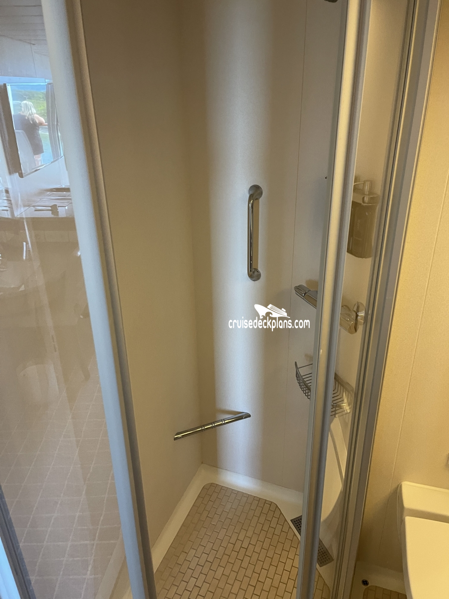 All category V3 cabins have obstructed view when looking down to the water and slightly obstructed horizon view. Category DV and V2 has unobstructed horizon view but obstructed views when looking down to the water (except some forward V2 cabins)