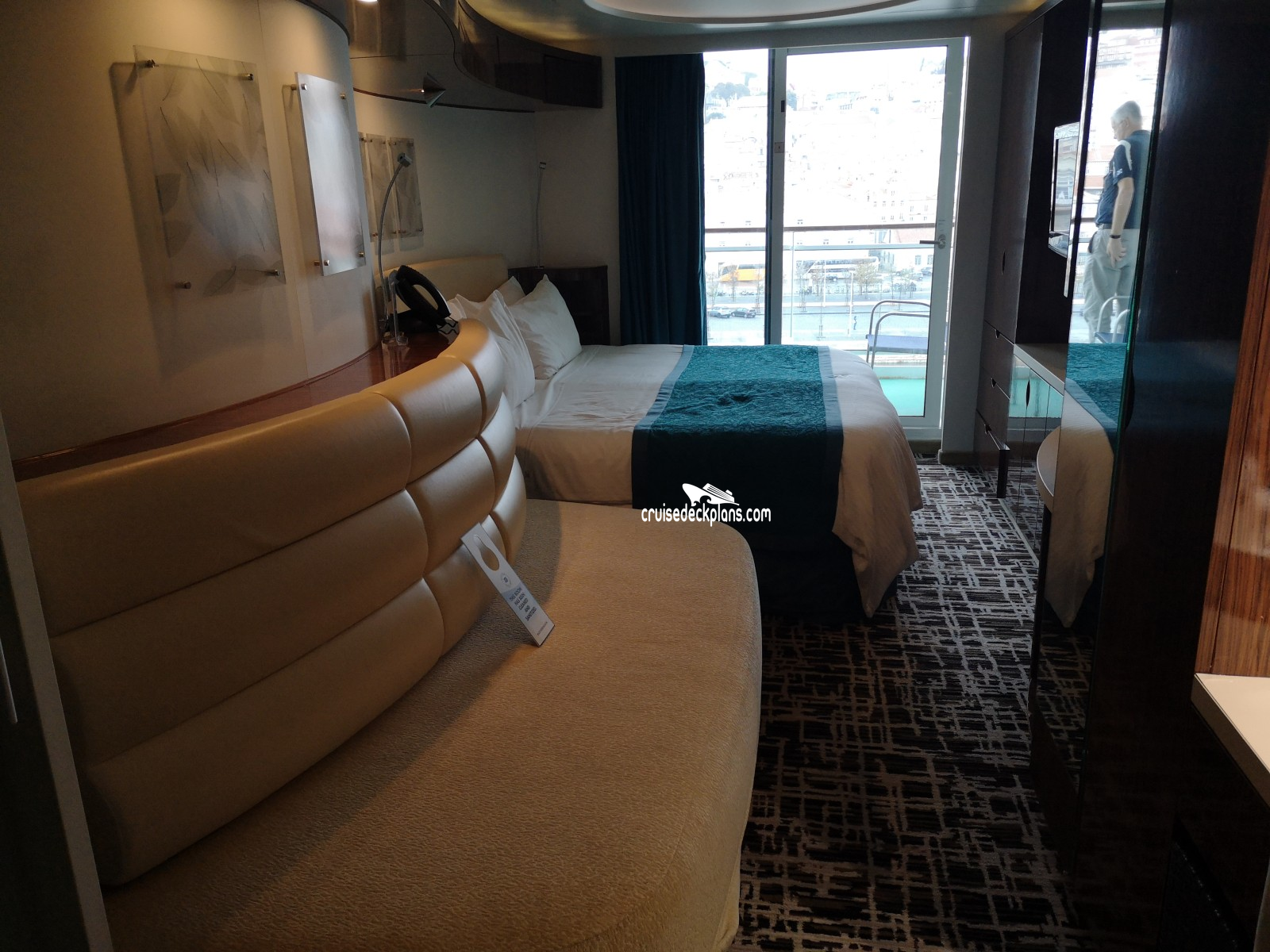 Cabin sizes range from 126 to 151 square feet. Balcony size ranges from 36 to 65 square feet or larger. Deck 8 starboard and port balconies are uncovered.