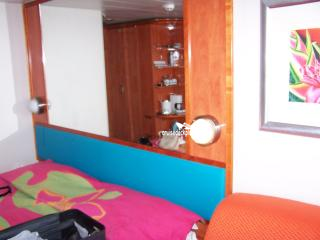 These are some actual stateroom pictures of cabin 9612 on the Pride of America. Click on images below for larger image and slide show. The slide show will show the date the picture was uploaded to out website. This date is useful because Pride of America typically will update its cabins every three to five years with new carpeting and decor. We will keep older pictures for you to compare the more recent photos to. The pictures are sorted by the newest ones first. Most of our cabin pictures are contributed by actual cruisers. We pay 50 cents for any that we use. You can upload your cabin photos HERE. Afer you are done looking at these photos and/or the videos below you can click here to select another cabin.