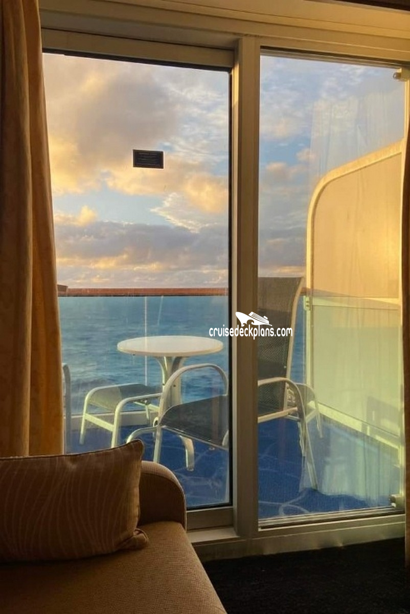 - NOTE: Staterooms on deck 9 are uncovered and open to view from above.