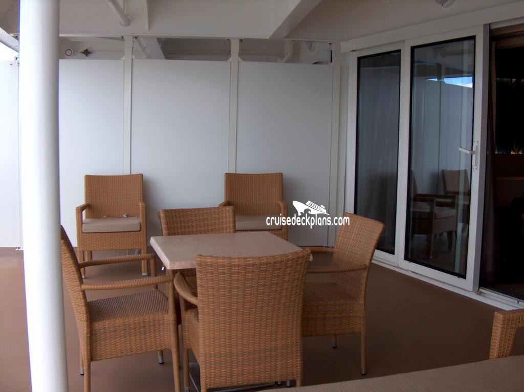 Butler Service / Concierge Service / Priority Check In / Priority Debarkation / Priority Tender Boarding / Dining in the Stateroom / Welcome Champagne / Exclusive Lounge / Exclusive Pool / Exclusive Outdoor Lounge / Thick Cotton Robes / Pillow Menu / Espresso & Cappuccino machine / Special suite menus / Bliss collection pillow-top mattress / Treats delivered to door every night / Courtyard valet / Escort to suite /