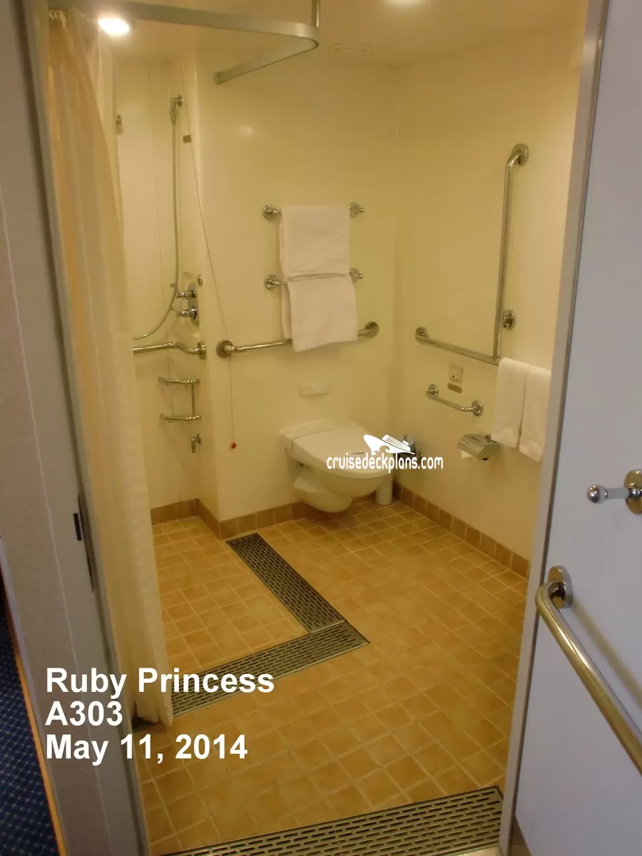 These are some actual stateroom pictures of cabin A303 on the Ruby Princess. Click on images below for larger image and slide show. The slide show will show the date the picture was uploaded to out website. This date is useful because Ruby Princess typically will update its cabins every three to five years with new carpeting and decor. We will keep older pictures for you to compare the more recent photos to. The pictures are sorted by the newest ones first. Most of our cabin pictures are contributed by actual cruisers. We pay 50 cents for any that we use. You can upload your cabin photos HERE. Afer you are done looking at these photos and/or the videos below you can click here to select another cabin.