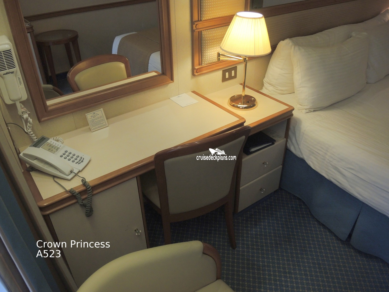 These are some actual stateroom pictures of cabin A523 on the Crown Princess. Click on images below for larger image and slide show. The slide show will show the date the picture was uploaded to out website. This date is useful because Crown Princess typically will update its cabins every three to five years with new carpeting and decor. We will keep older pictures for you to compare the more recent photos to. The pictures are sorted by the newest ones first. Most of our cabin pictures are contributed by actual cruisers. We pay 50 cents for any that we use. You can upload your cabin photos HERE. Afer you are done looking at these photos and/or the videos below you can click here to select another cabin.
