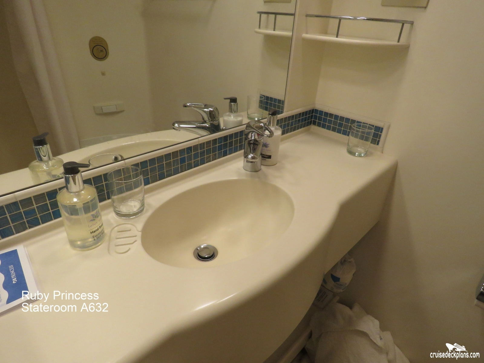 Ruby Princess Balcony cabin number A632 ACTUAL videos and/or pictures, floor plans, diagrams and detailed features including a deck image of the actual location on the Ruby Princess ship for cabin A632. Cruisedeckplans.com has 73,444 different (staterooms) cabins that have actual cabin pictures and/or cabin videos taken by real cruisers. That is plenty of coverage to provide you with a good sampling of all the different cabins on cruise ships. Take a minute and notice the breadcrumb menu above. This is a quick easy way to navigate our website. You can also use the menu above for menu items specific to the Ruby Princess cruise ship.