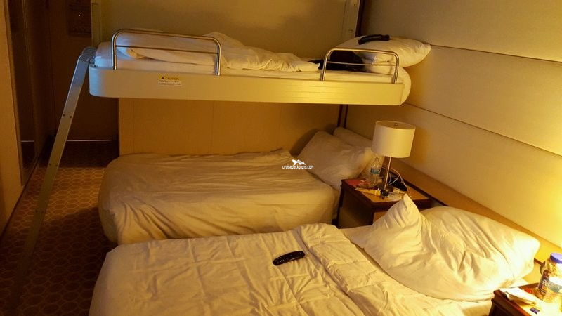 IMPORTANT NOTE: Category BV, BW, BY, BZ have obstructed view due to solid steel railings or top of lifeboats. When upper berth is used in cabins that sleep 3, the balcony door will be blocked. In cabins designed for 4 passengers, the two beds do not convert to queen if upper berths being used.