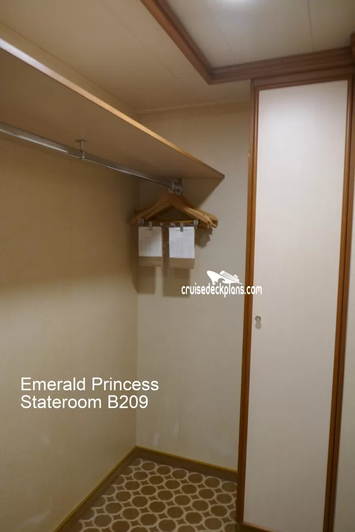 These are some actual stateroom pictures of cabin B209 on the Emerald Princess. Click on images below for larger image and slide show. The slide show will show the date the picture was uploaded to out website. This date is useful because Emerald Princess typically will update its cabins every three to five years with new carpeting and decor. We will keep older pictures for you to compare the more recent photos to. The pictures are sorted by the newest ones first. Most of our cabin pictures are contributed by actual cruisers. We pay 50 cents for any that we use. You can upload your cabin photos HERE. Afer you are done looking at these photos and/or the videos below you can click here to select another cabin.