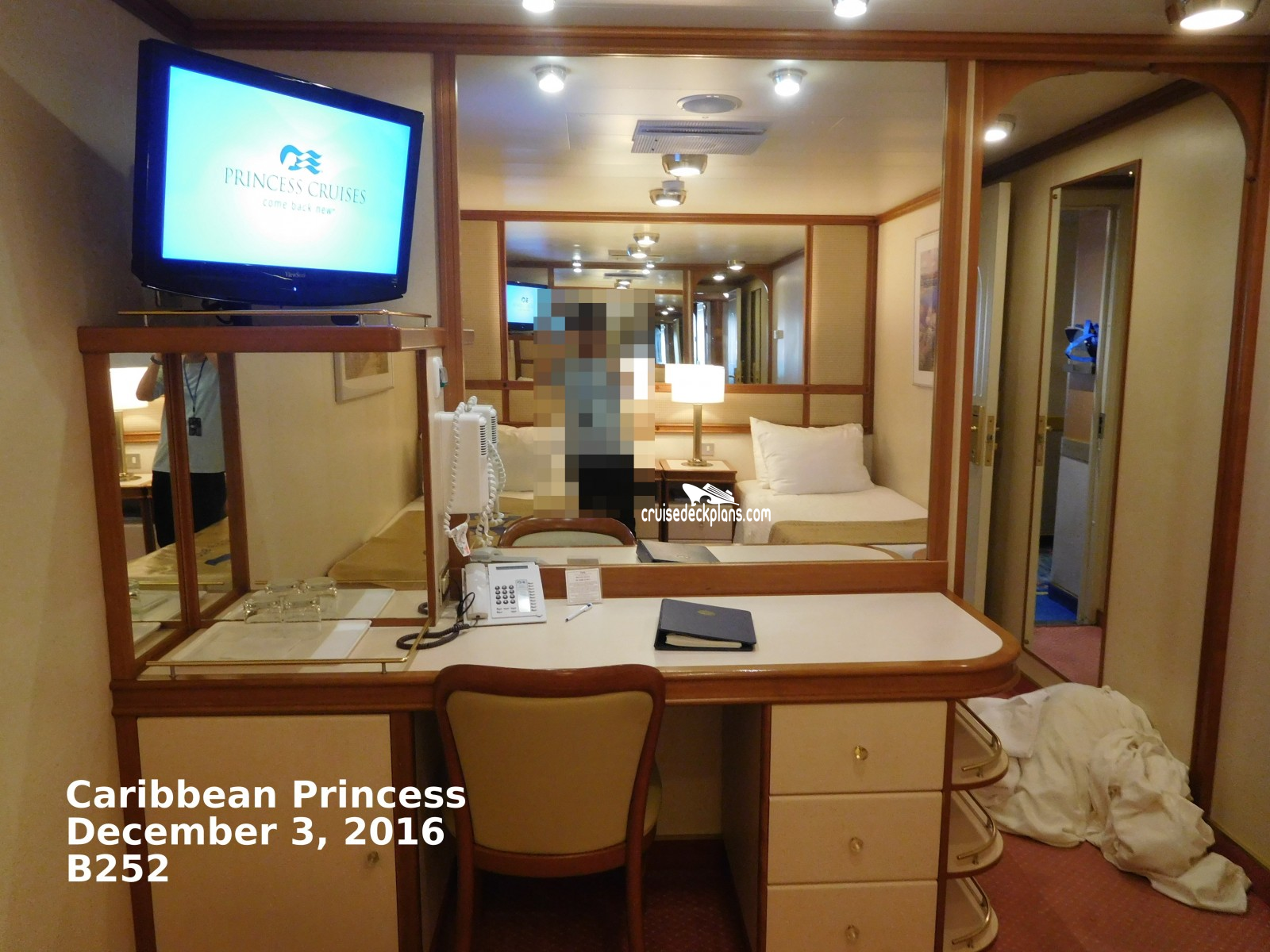 These are some actual stateroom pictures of cabin B252 on the Caribbean Princess. Click on images below for larger image and slide show. The slide show will show the date the picture was uploaded to out website. This date is useful because Caribbean Princess typically will update its cabins every three to five years with new carpeting and decor. We will keep older pictures for you to compare the more recent photos to. The pictures are sorted by the newest ones first. Most of our cabin pictures are contributed by actual cruisers. We pay 50 cents for any that we use. You can upload your cabin photos HERE. Afer you are done looking at these photos and/or the videos below you can click here to select another cabin.
