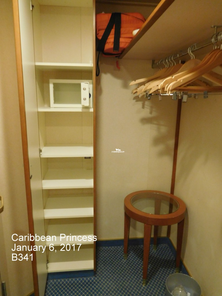 These are some actual stateroom pictures of cabin B341 on the Caribbean Princess. Click on images below for larger image and slide show. The slide show will show the date the picture was uploaded to out website. This date is useful because Caribbean Princess typically will update its cabins every three to five years with new carpeting and decor. We will keep older pictures for you to compare the more recent photos to. The pictures are sorted by the newest ones first. Most of our cabin pictures are contributed by actual cruisers. We pay 50 cents for any that we use. You can upload your cabin photos HERE. Afer you are done looking at these photos and/or the videos below you can click here to select another cabin.