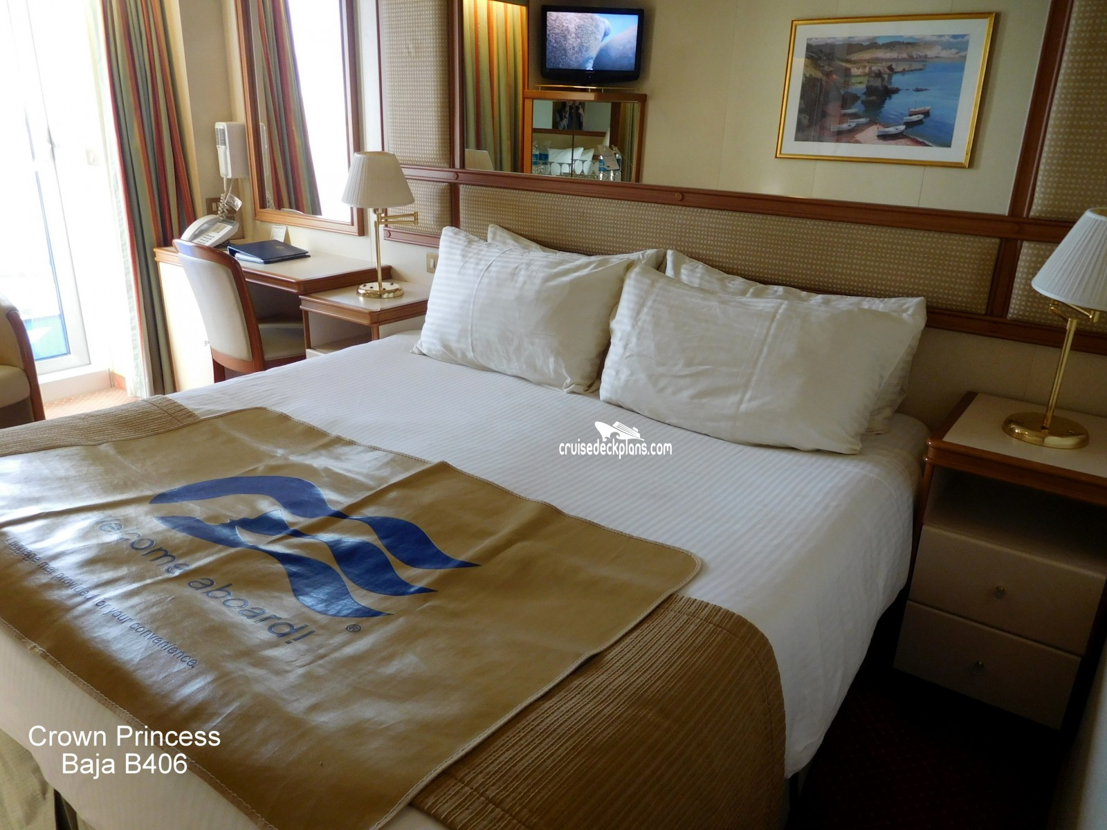 Crown Princess Balcony cabin number B406 ACTUAL videos and/or pictures, floor plans, diagrams and detailed features including a deck image of the actual location on the Crown Princess ship for cabin B406. Cruisedeckplans.com has 74,814 different (staterooms) cabins that have actual cabin pictures and/or cabin videos taken by real cruisers. That is plenty of coverage to provide you with a good sampling of all the different cabins on cruise ships. Take a minute and notice the breadcrumb menu above. This is a quick easy way to navigate our website. You can also use the menu above for menu items specific to the Crown Princess cruise ship.