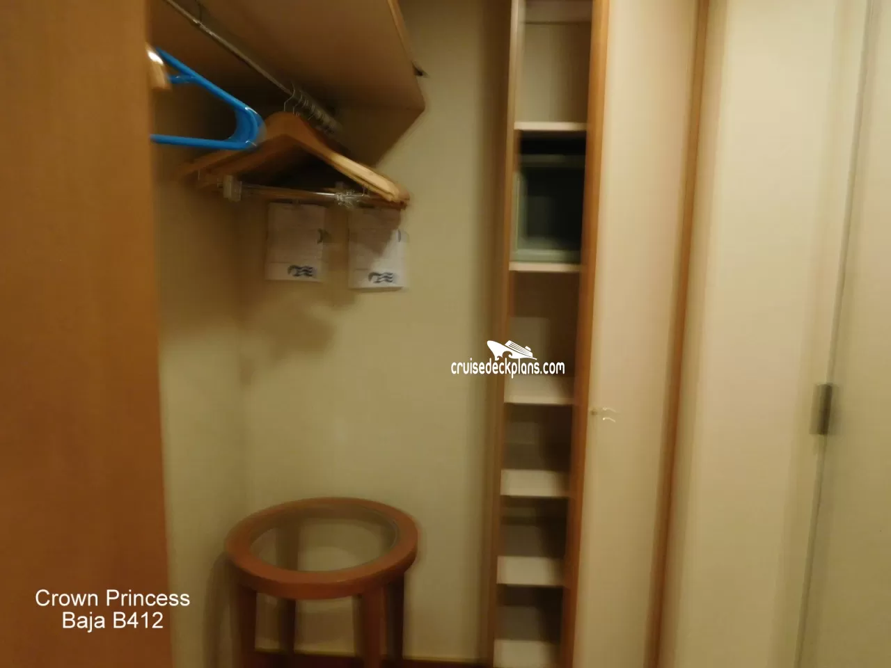 These are some actual stateroom pictures of cabin B412 on the Crown Princess. Click on images below for larger image and slide show. The slide show will show the date the picture was uploaded to out website. This date is useful because Crown Princess typically will update its cabins every three to five years with new carpeting and decor. We will keep older pictures for you to compare the more recent photos to. The pictures are sorted by the newest ones first. Most of our cabin pictures are contributed by actual cruisers. We pay 50 cents for any that we use. You can upload your cabin photos HERE. Afer you are done looking at these photos and/or the videos below you can click here to select another cabin.