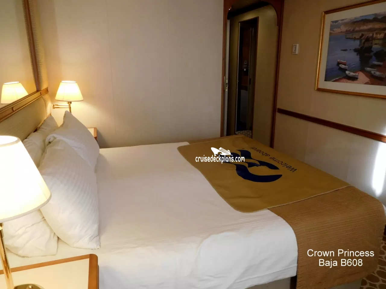 These are some actual stateroom pictures of cabin B608 on the Crown Princess. Click on images below for larger image and slide show. The slide show will show the date the picture was uploaded to out website. This date is useful because Crown Princess typically will update its cabins every three to five years with new carpeting and decor. We will keep older pictures for you to compare the more recent photos to. The pictures are sorted by the newest ones first. Most of our cabin pictures are contributed by actual cruisers. We pay 50 cents for any that we use. You can upload your cabin photos HERE. Afer you are done looking at these photos and/or the videos below you can click here to select another cabin.