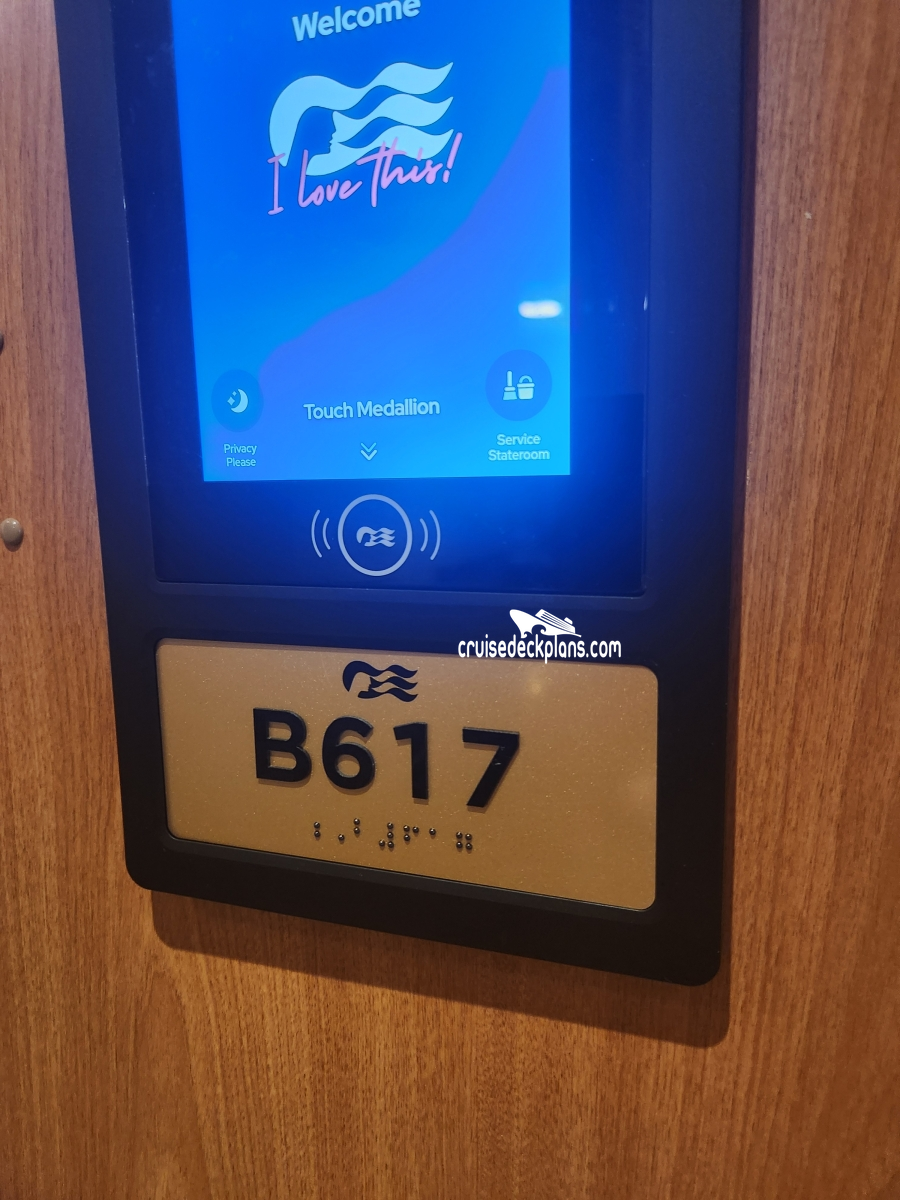 Diamond Princess Balcony cabin number B617 ACTUAL videos and/or pictures, floor plans, diagrams and detailed features including a deck image of the actual location on the Diamond Princess ship for cabin B617. Cruisedeckplans.com has 73,076 different (staterooms) cabins that have actual cabin pictures and/or cabin videos taken by real cruisers. That is plenty of coverage to provide you with a good sampling of all the different cabins on cruise ships. Take a minute and notice the breadcrumb menu above. This is a quick easy way to navigate our website. You can also use the menu above for menu items specific to the Diamond Princess cruise ship.
