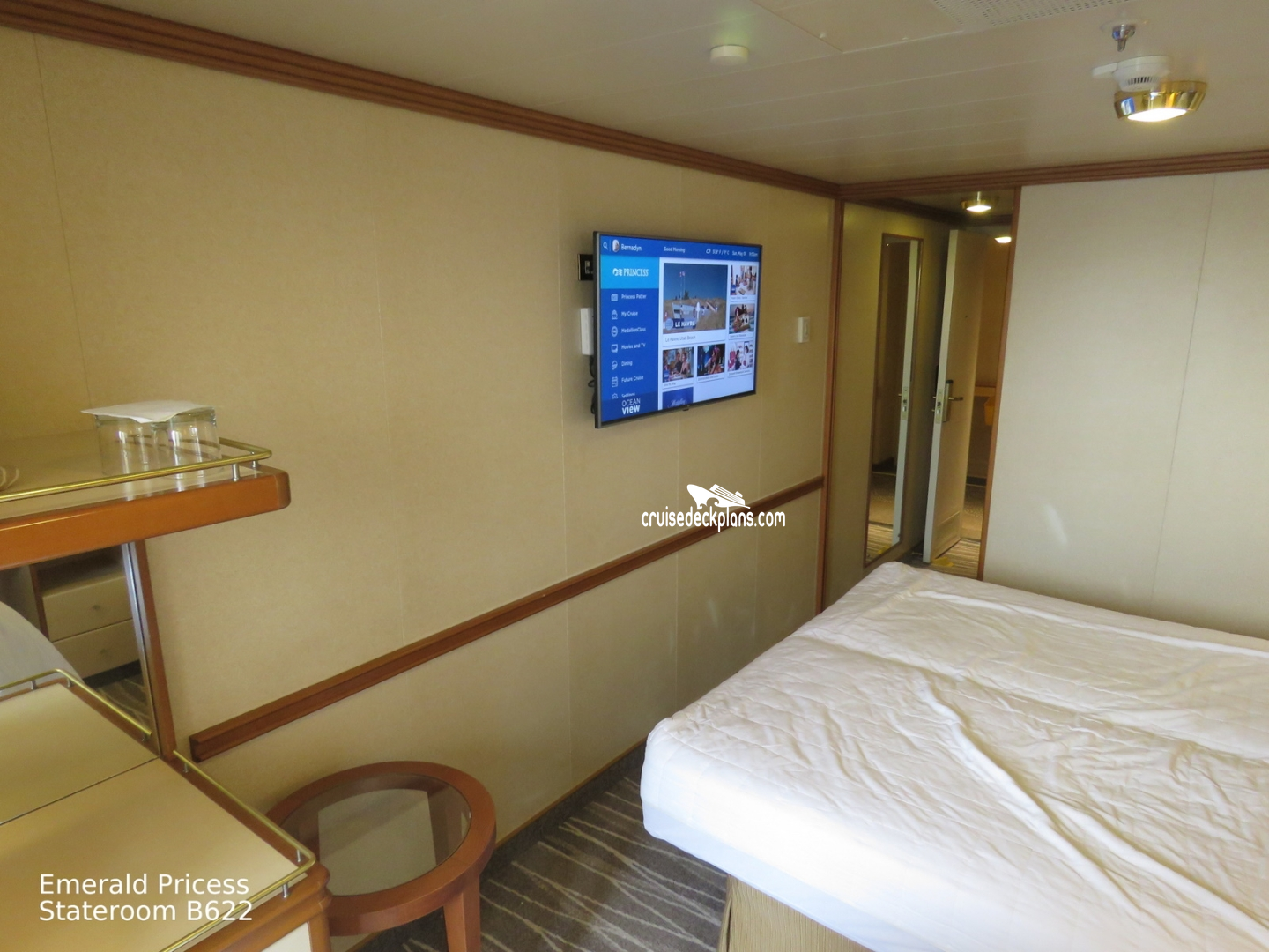 Scroll over cabin (stateroom) tiles below to click and watch actual stateroom videos of Emerald Princess cabin B622. You can choose to watch the videos right on this page, or click to watch them on YouTube (will open in new window). When you are done viewing these videos and/or the cabin pictures above, you can click here to select another cabin. The date shown below is the date video was published. Use this to see decor changes. Keep in mind that stateroom cabins are typically updated once every three to five years. To save you time, Cruisedeckplans.com will spend hours every week finding more actual stateroom videos on YouTube.