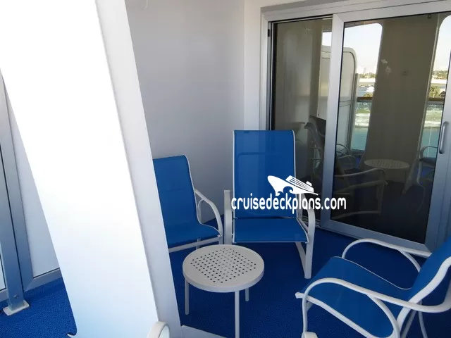Balcony size ranges from 46 to 89 square feet. Caribe deck balconies are sized 9 ft. wide x 9 ft. deep and have ceiling overhang/balcony cover over the first 5 ft.