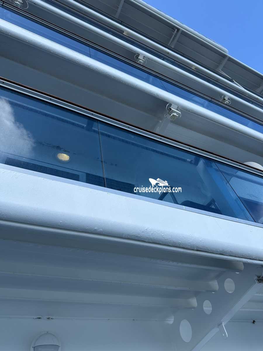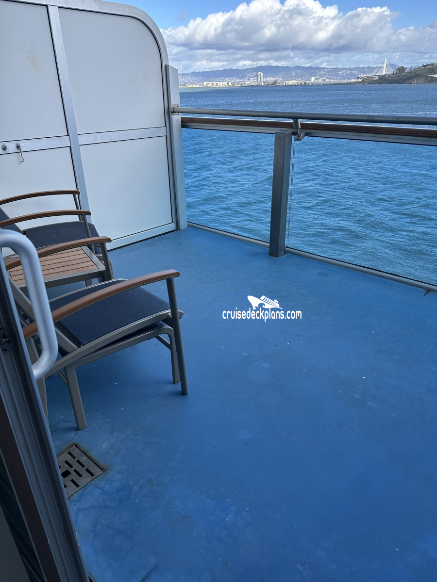 Balcony size ranges from 46 to 89 square feet. Caribe deck balconies are sized 9 ft. wide x 9 ft. deep and have ceiling overhang/balcony cover over the first 5 ft.