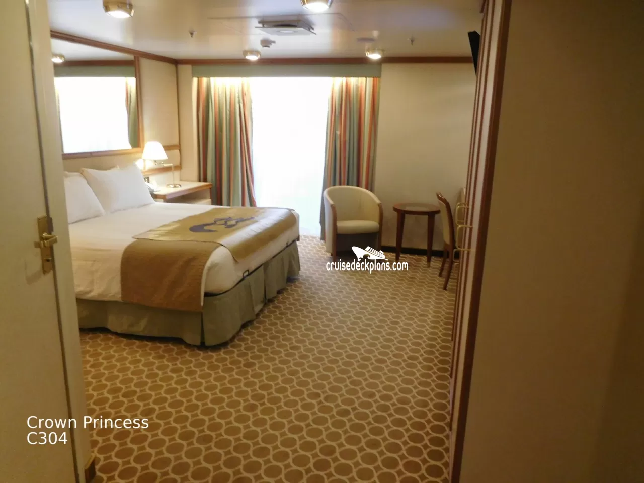 Crown Princess Balcony cabin number C304 ACTUAL videos and/or pictures, floor plans, diagrams and detailed features including a deck image of the actual location on the Crown Princess ship for cabin C304. Cruisedeckplans.com has 73,937 different (staterooms) cabins that have actual cabin pictures and/or cabin videos taken by real cruisers. That is plenty of coverage to provide you with a good sampling of all the different cabins on cruise ships. Take a minute and notice the breadcrumb menu above. This is a quick easy way to navigate our website. You can also use the menu above for menu items specific to the Crown Princess cruise ship.