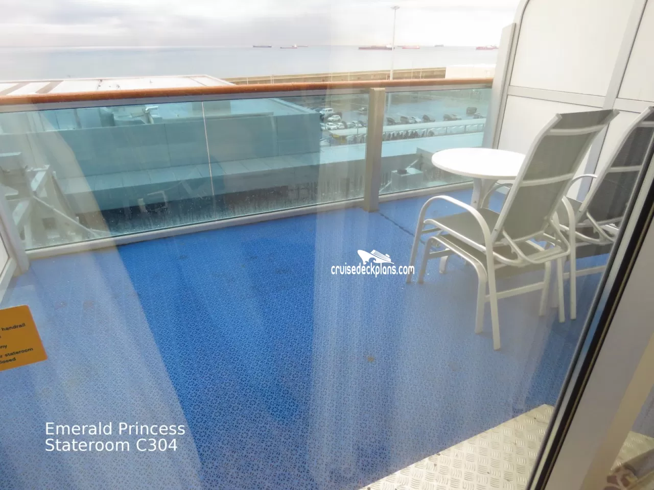 Emerald Princess Balcony cabin number C304 ACTUAL videos and/or pictures, floor plans, diagrams and detailed features including a deck image of the actual location on the Emerald Princess ship for cabin C304. Cruisedeckplans.com has 73,572 different (staterooms) cabins that have actual cabin pictures and/or cabin videos taken by real cruisers. That is plenty of coverage to provide you with a good sampling of all the different cabins on cruise ships. Take a minute and notice the breadcrumb menu above. This is a quick easy way to navigate our website. You can also use the menu above for menu items specific to the Emerald Princess cruise ship.