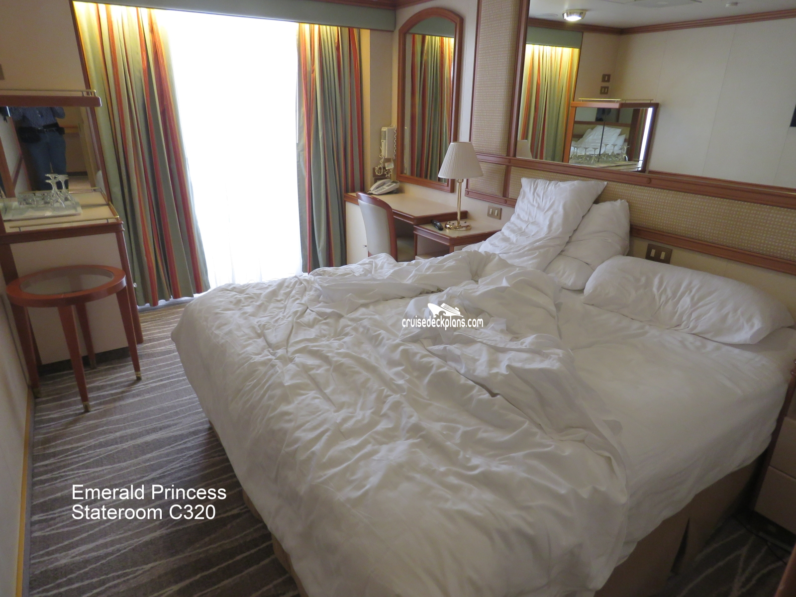These are some actual stateroom pictures of cabin C320 on the Emerald Princess. Click on images below for larger image and slide show. The slide show will show the date the picture was uploaded to out website. This date is useful because Emerald Princess typically will update its cabins every three to five years with new carpeting and decor. We will keep older pictures for you to compare the more recent photos to. The pictures are sorted by the newest ones first. Most of our cabin pictures are contributed by actual cruisers. We pay 50 cents for any that we use. You can upload your cabin photos HERE. Afer you are done looking at these photos and/or the videos below you can click here to select another cabin.