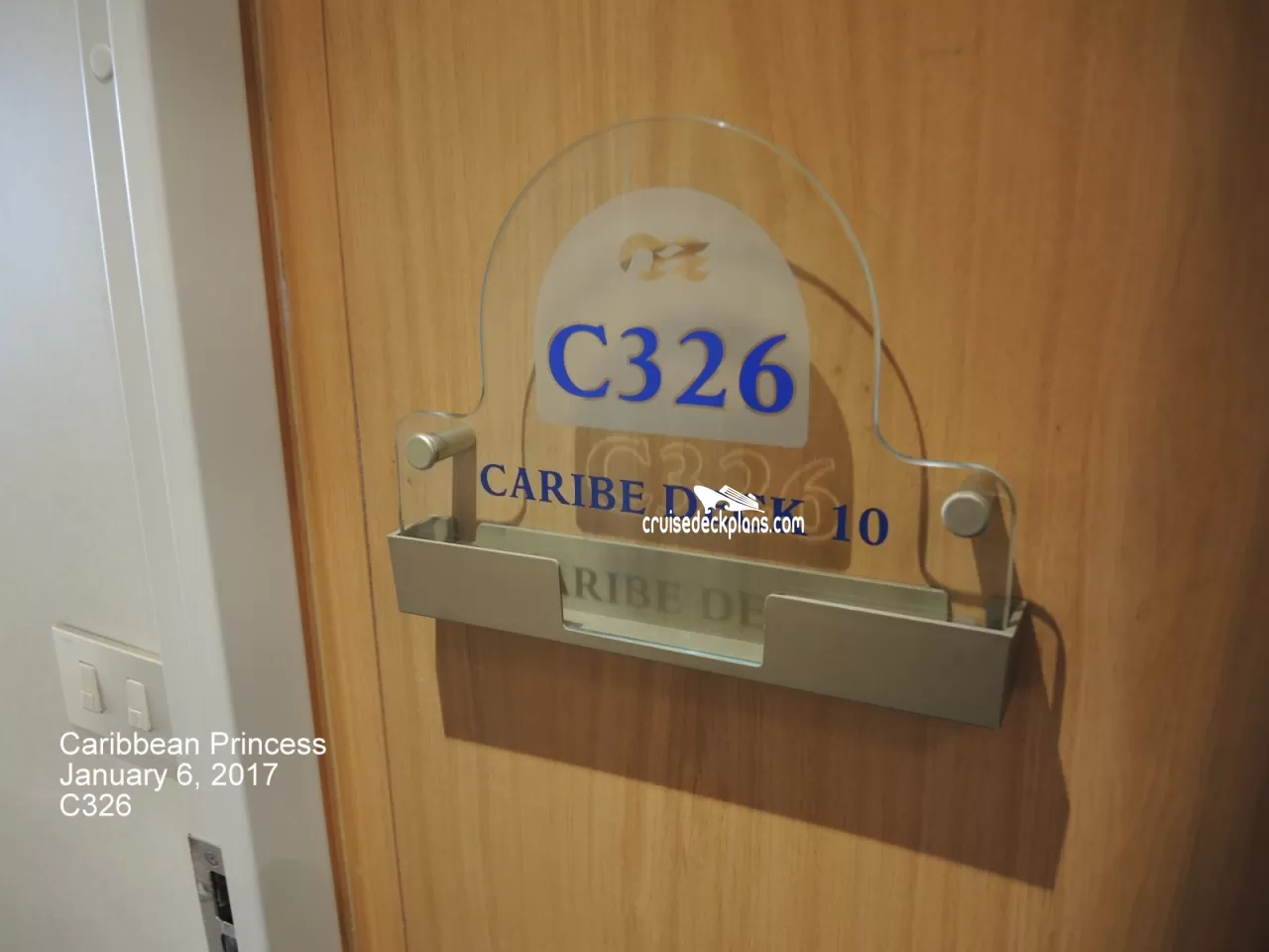 These are some actual stateroom pictures of cabin C326 on the Caribbean Princess. Click on images below for larger image and slide show. The slide show will show the date the picture was uploaded to out website. This date is useful because Caribbean Princess typically will update its cabins every three to five years with new carpeting and decor. We will keep older pictures for you to compare the more recent photos to. The pictures are sorted by the newest ones first. Most of our cabin pictures are contributed by actual cruisers. We pay 50 cents for any that we use. You can upload your cabin photos HERE. Afer you are done looking at these photos and/or the videos below you can click here to select another cabin.