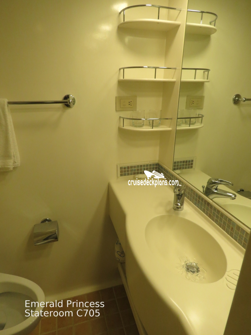 Emerald Princess Balcony cabin number C705 ACTUAL videos and/or pictures, floor plans, diagrams and detailed features including a deck image of the actual location on the Emerald Princess ship for cabin C705. Cruisedeckplans.com has 75,438 different (staterooms) cabins that have actual cabin pictures and/or cabin videos taken by real cruisers. That is plenty of coverage to provide you with a good sampling of all the different cabins on cruise ships. Take a minute and notice the breadcrumb menu above. This is a quick easy way to navigate our website. You can also use the menu above for menu items specific to the Emerald Princess cruise ship.